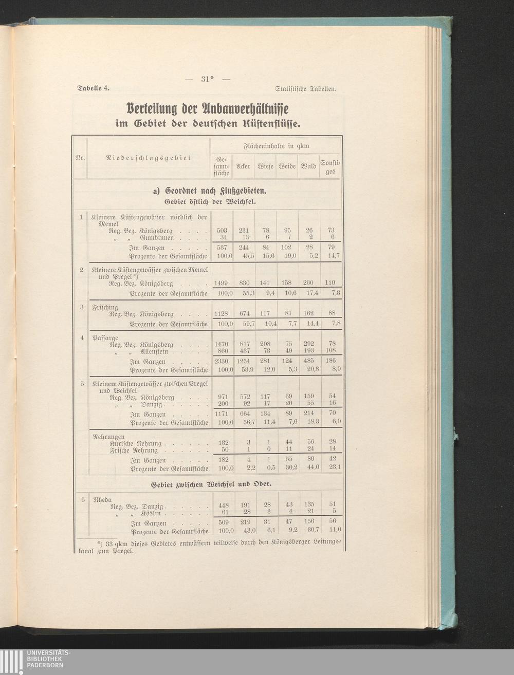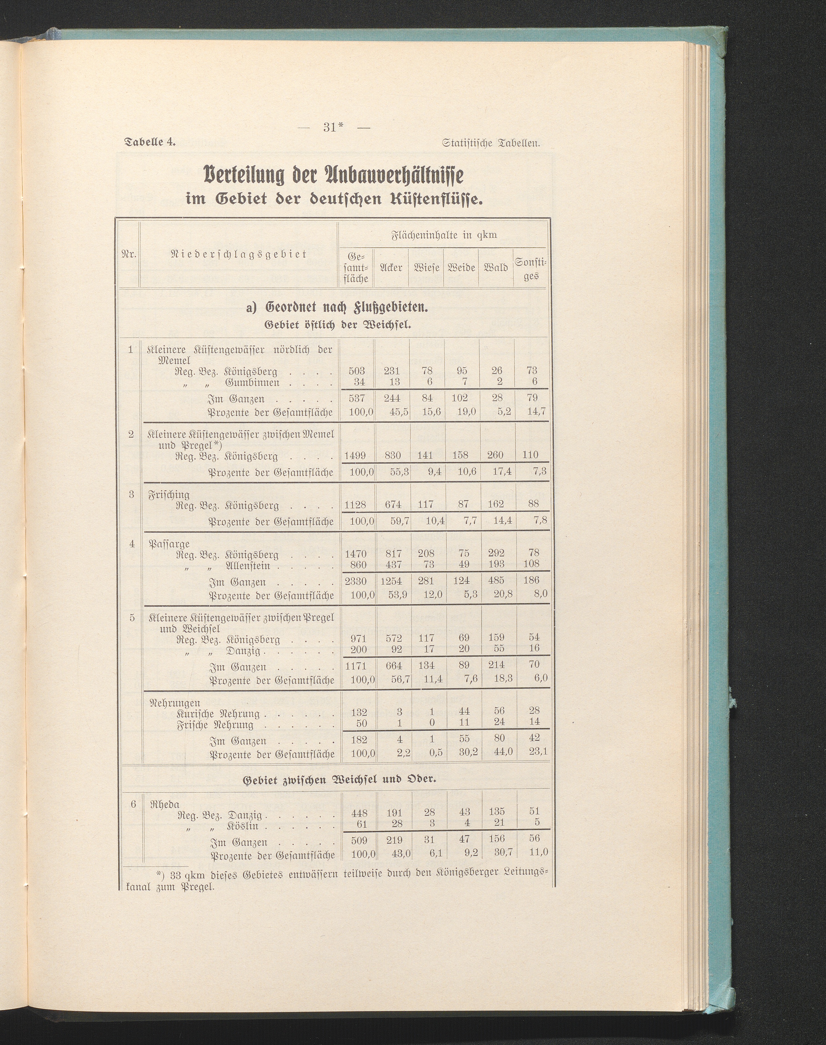 Tab. 4. Verteilung der Anbauverhältnisse im Gebiet der deutschen Küstenflüsse