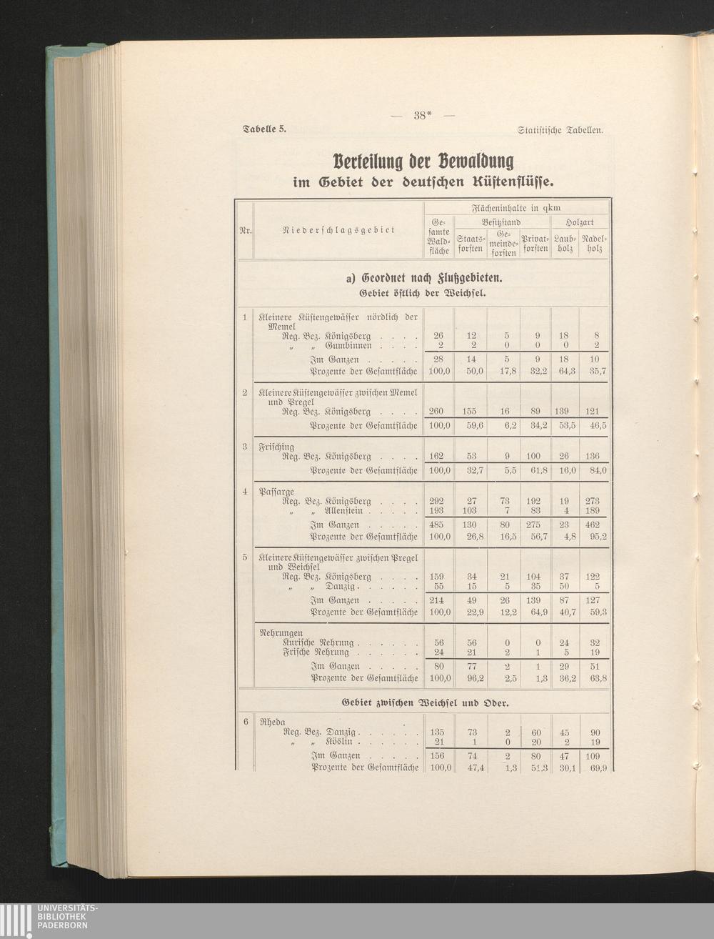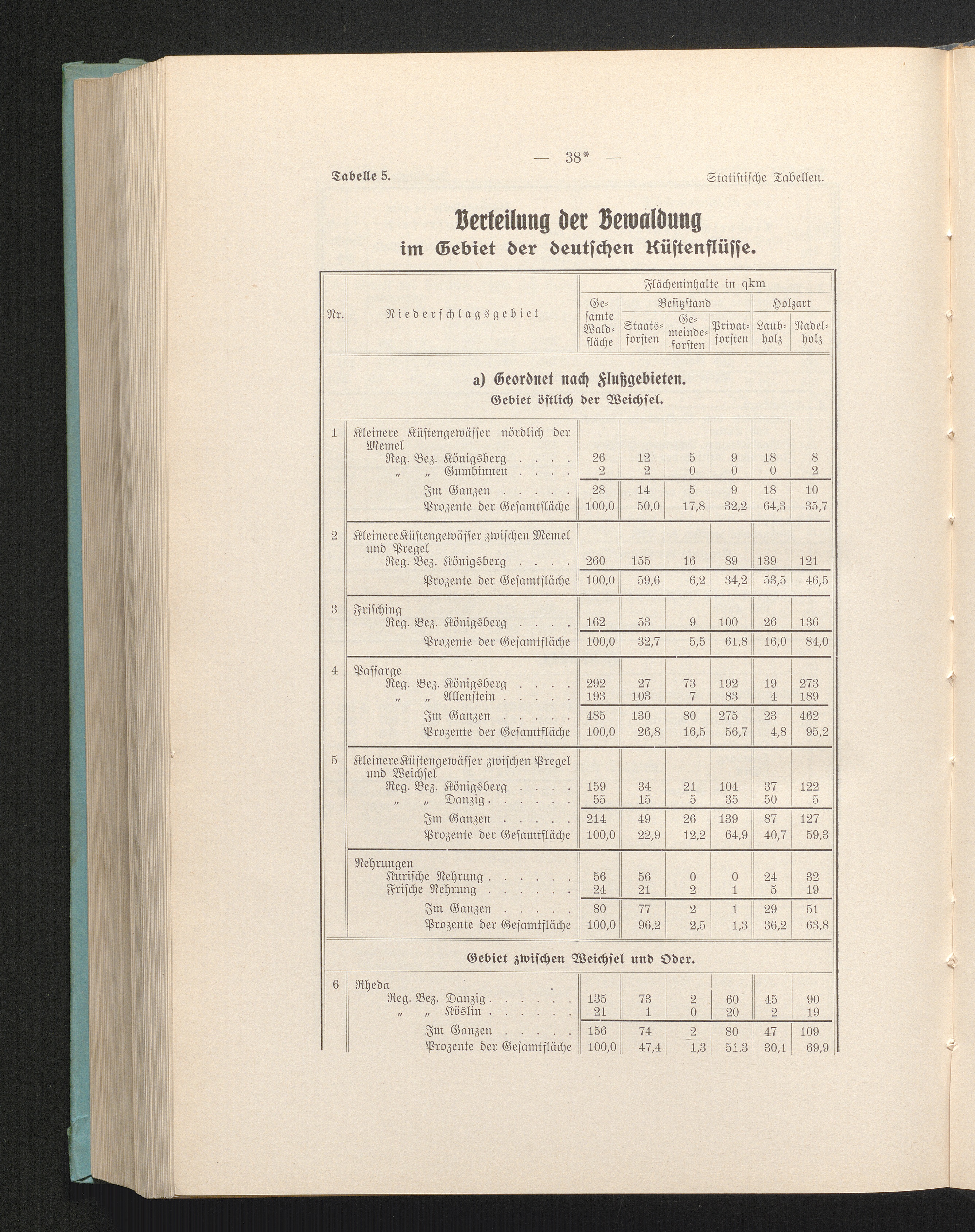 Tab. 5. Verteilung der Bewaldung im Gebiet der deutschen Küstenflüsse