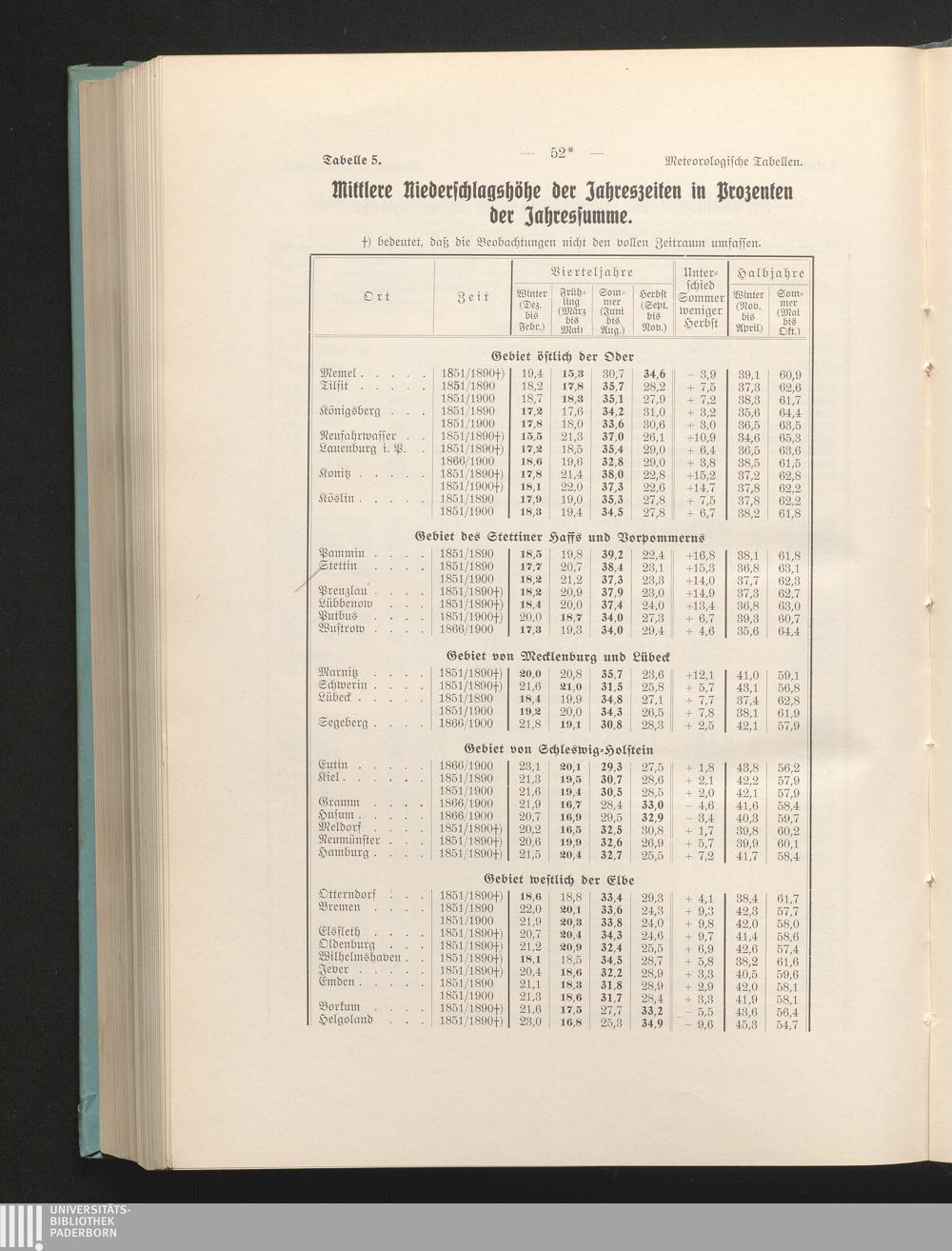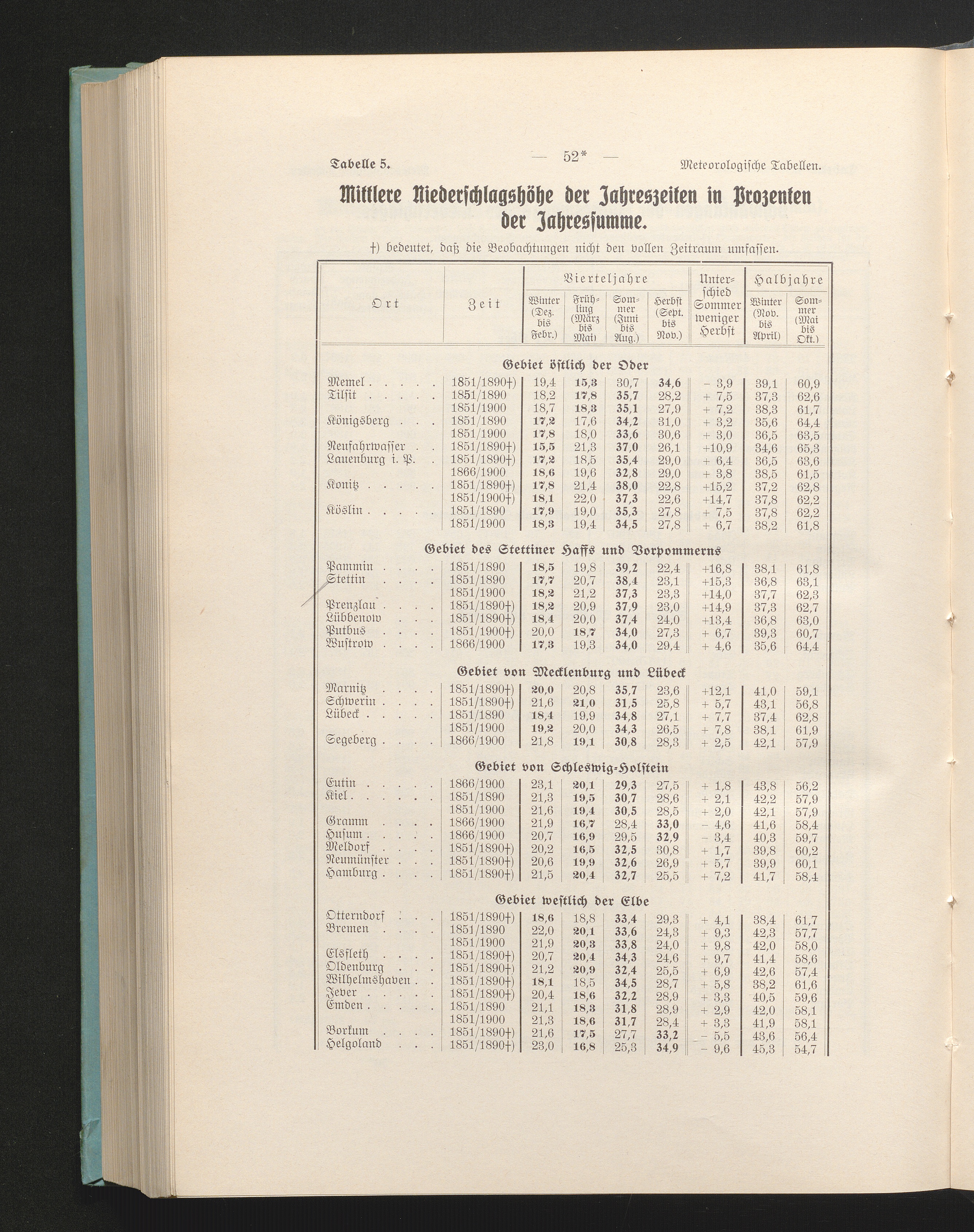 Tab. 5. Mittlere Niederschlagshöhe der Jahreszeiten in Prozenten der Jahressumme