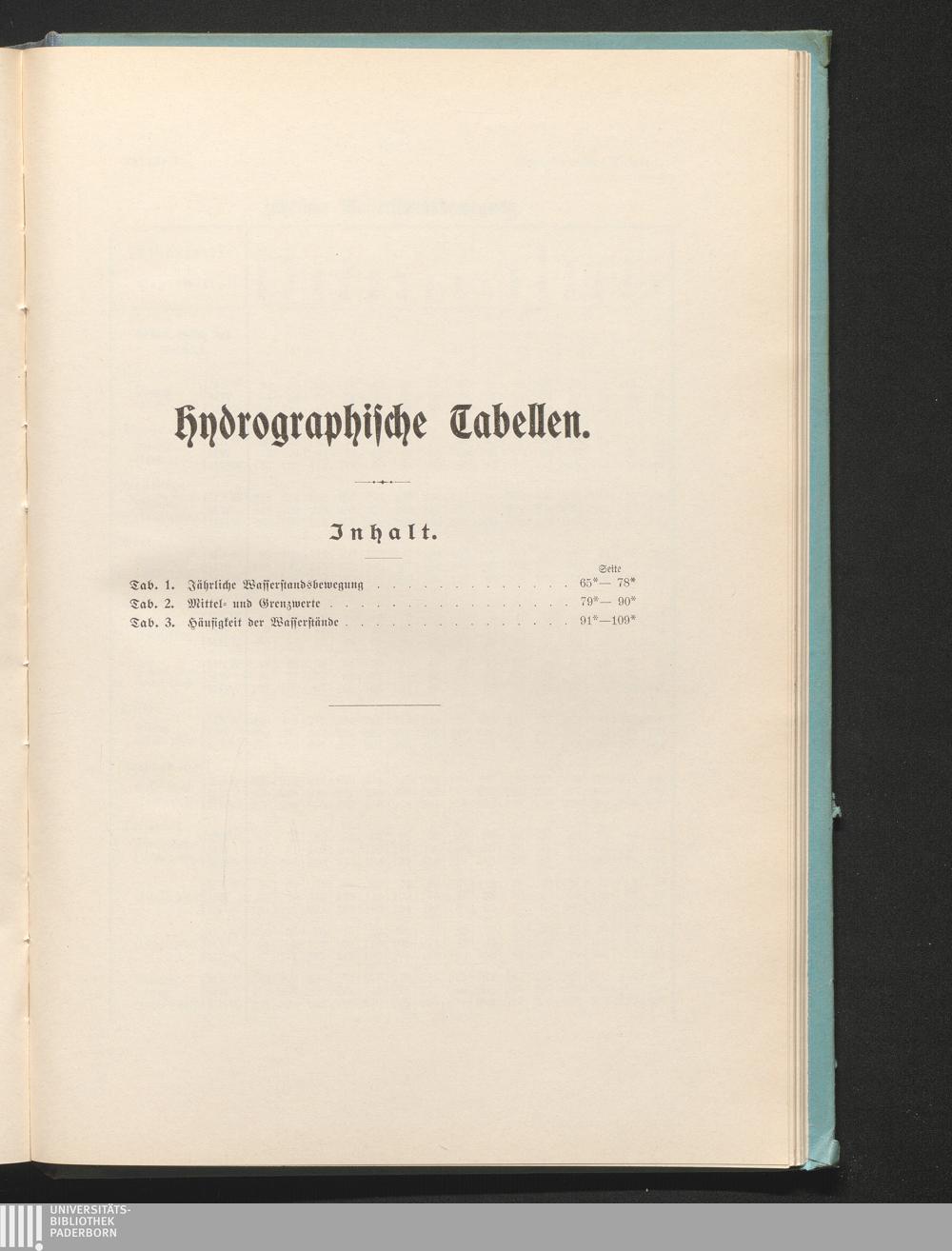 Hydrographische Tabellen.