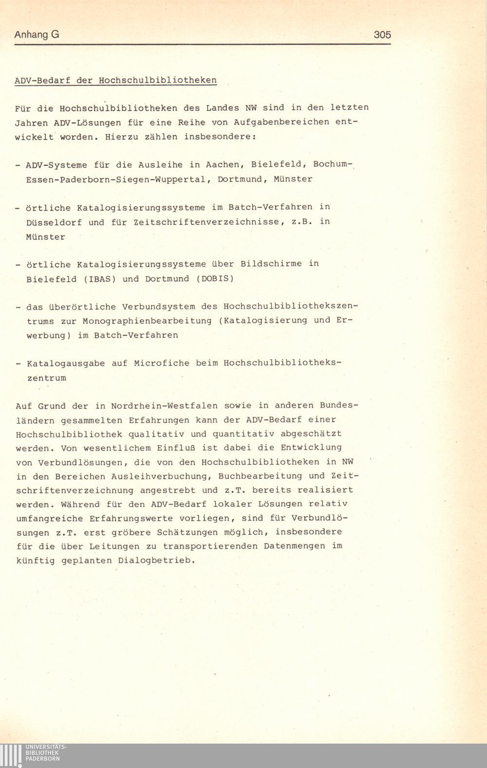 ADV-Gesamtplan für die Hochschulen des Landes Nordrhein-Westfalen : (ADVGP-HS) ; Empfehlungen der Sachverständigen-Arbeitsgruppe beim Minister für Wissenschaft und Forschung des Landes Nordrhein-Westfalen / vorgelegt von der Sachverständigen-Arbeitsgruppe für die Erstellung eines Gesamtplanes für die Automatisierte Datenverarbeitung an den Hochschulen des Landes Nordrhein-Westfalen
