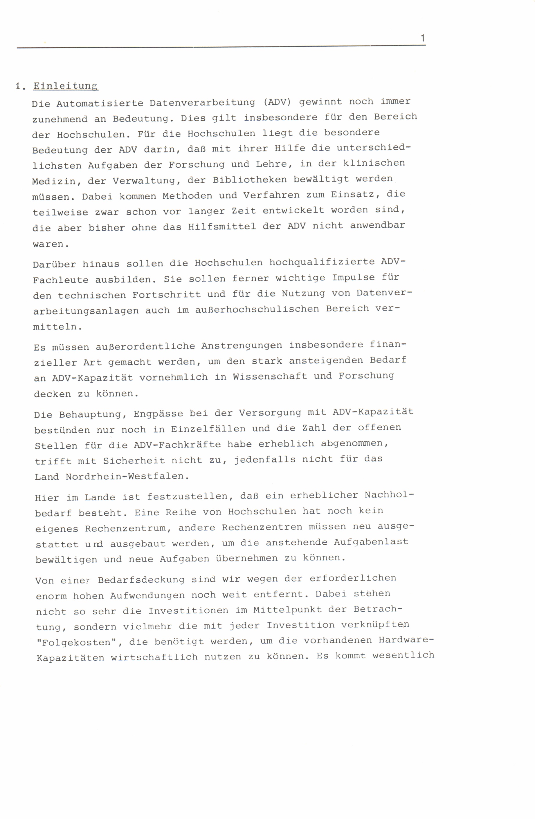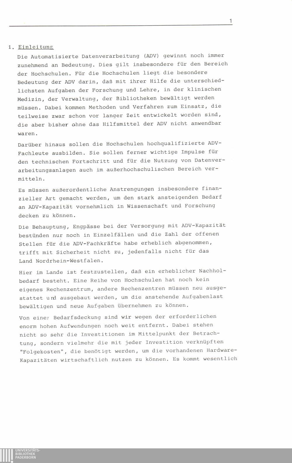 ADV-Gesamtplan für die Hochschulen des Landes Nordrhein-Westfalen bis 1980 : (ADVGP-HS 1980) / vorgelegt von der Sachverständigen-Arbeitsgruppe für die Erstellung eines Gesamtplanes für die Automatisierte Datenverarbeitung an den Hochschulen des Landes Nordrhein-Westfalen