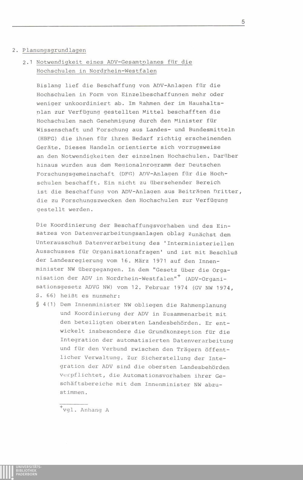 ADV-Gesamtplan für die Hochschulen des Landes Nordrhein-Westfalen bis 1980 : (ADVGP-HS 1980) / vorgelegt von der Sachverständigen-Arbeitsgruppe für die Erstellung eines Gesamtplanes für die Automatisierte Datenverarbeitung an den Hochschulen des Landes Nordrhein-Westfalen