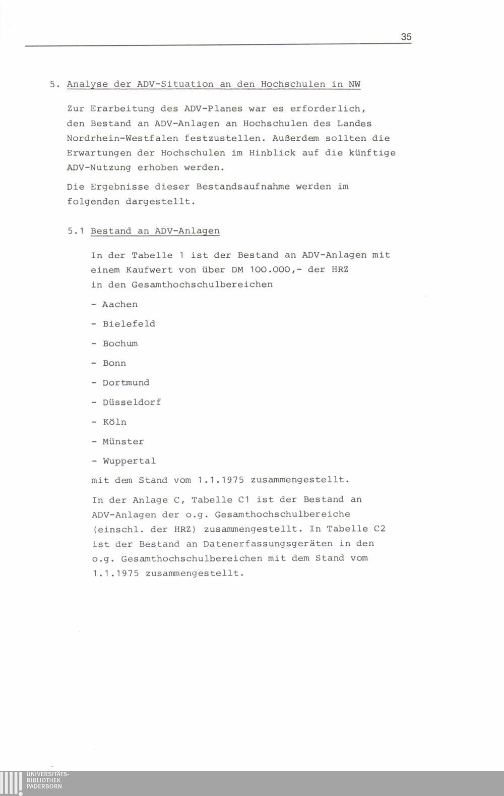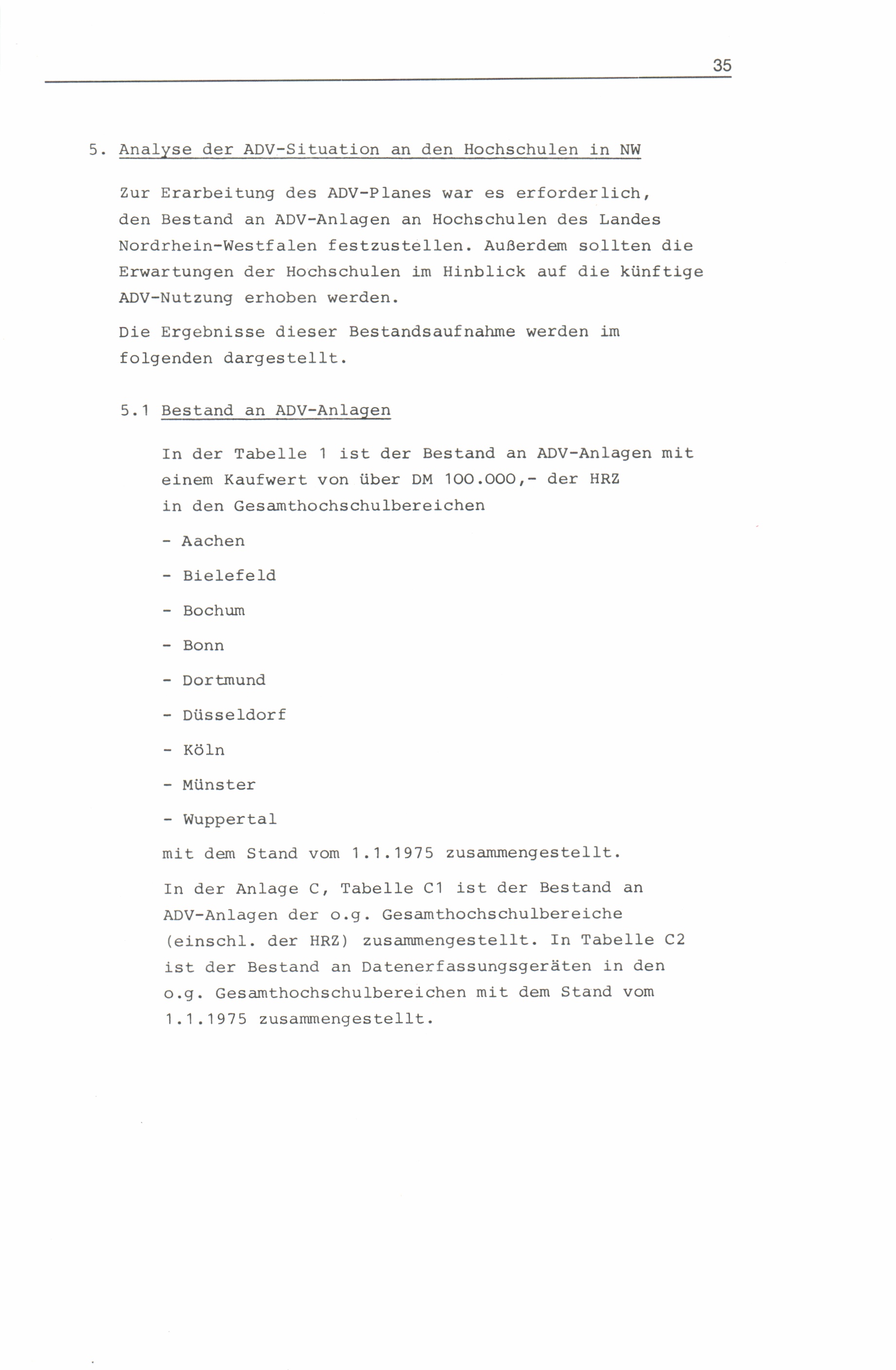 ADV-Gesamtplan für die Hochschulen des Landes Nordrhein-Westfalen bis 1980 : (ADVGP-HS 1980) / vorgelegt von der Sachverständigen-Arbeitsgruppe für die Erstellung eines Gesamtplanes für die Automatisierte Datenverarbeitung an den Hochschulen des Landes Nordrhein-Westfalen