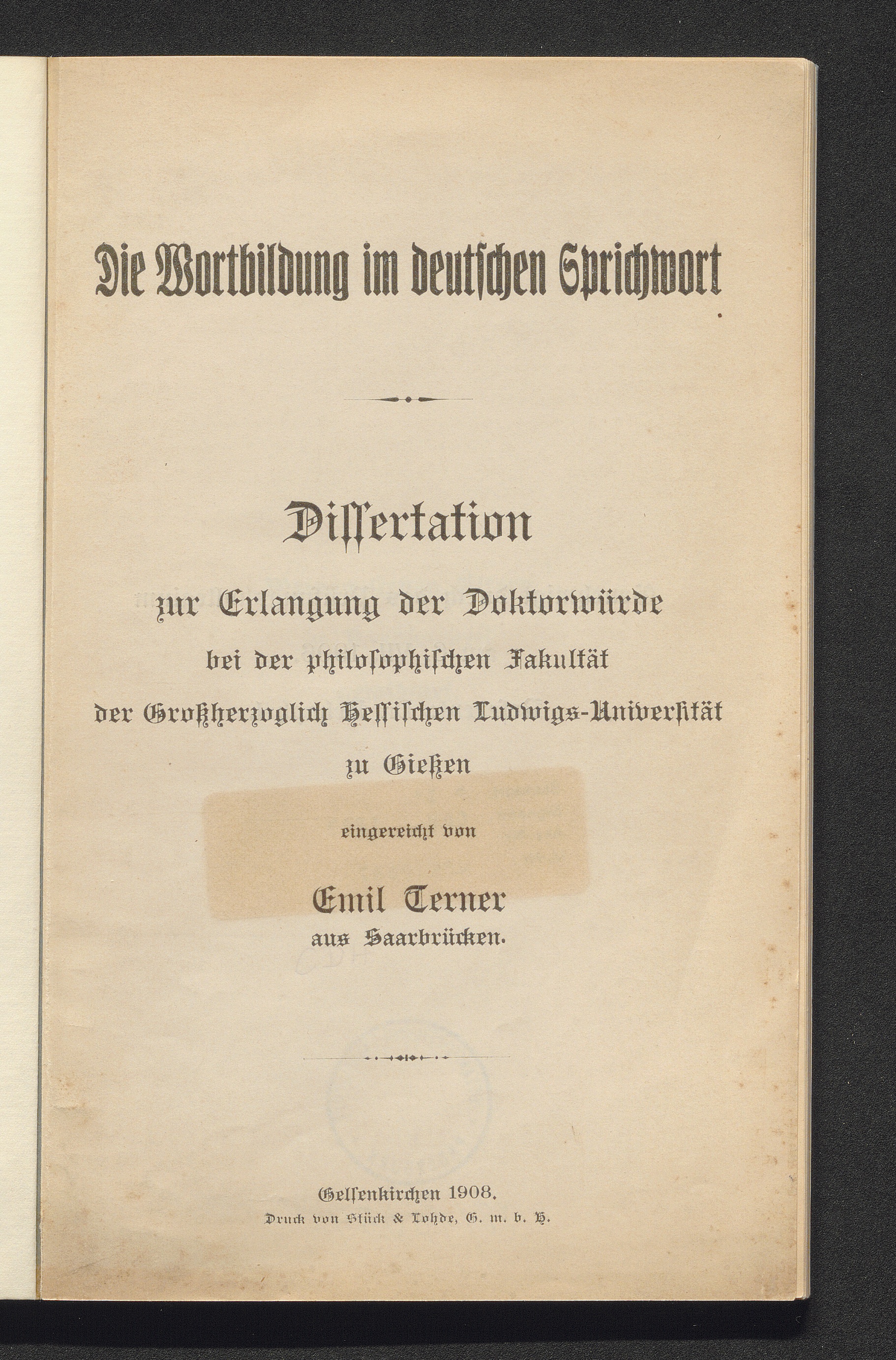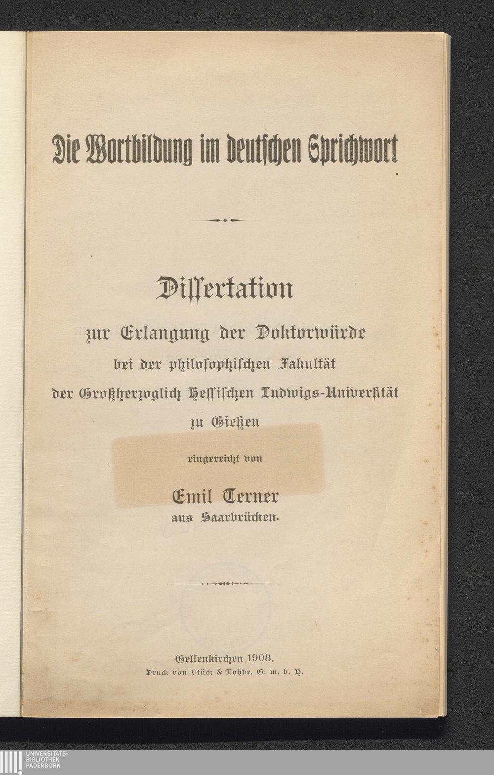 Die Wortbildung im deutschen Sprichwort / eingereicht von Emil Terner