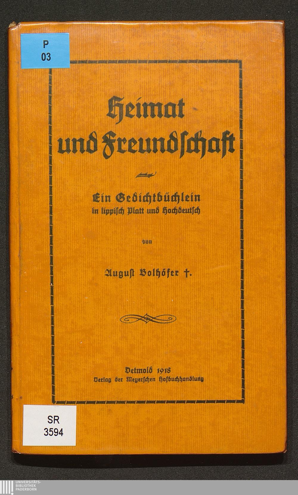 Heimat und Freundschaft : ein Gedichtbüchlein in lippisch Platt und Hochdeutsch / von August Bolhöfer