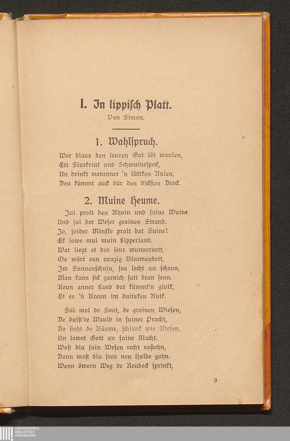 I. In lippisch Platt van Simon.