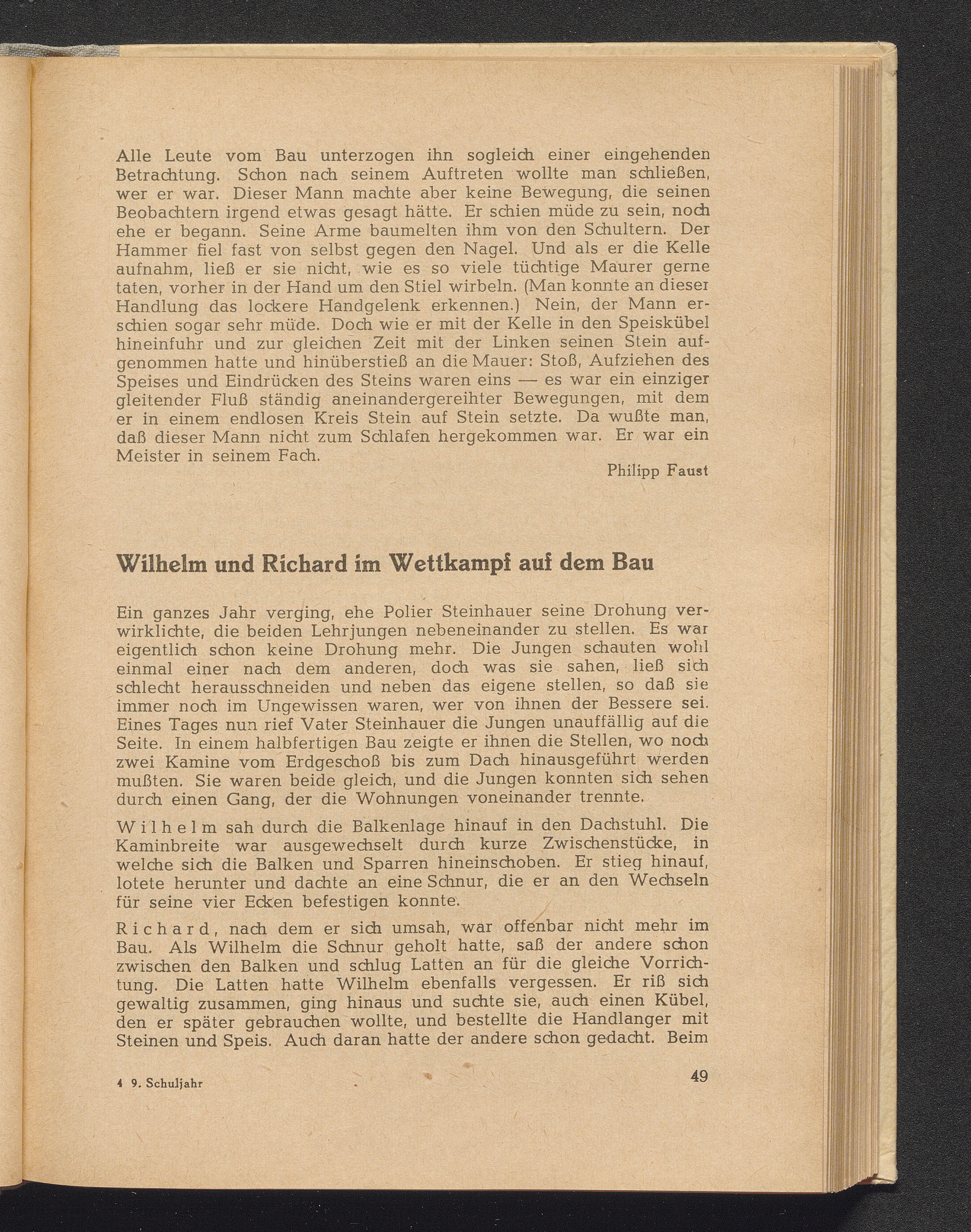 Faust, Philipp Wilhelm und Richard im Wettkampf auf dem Bau