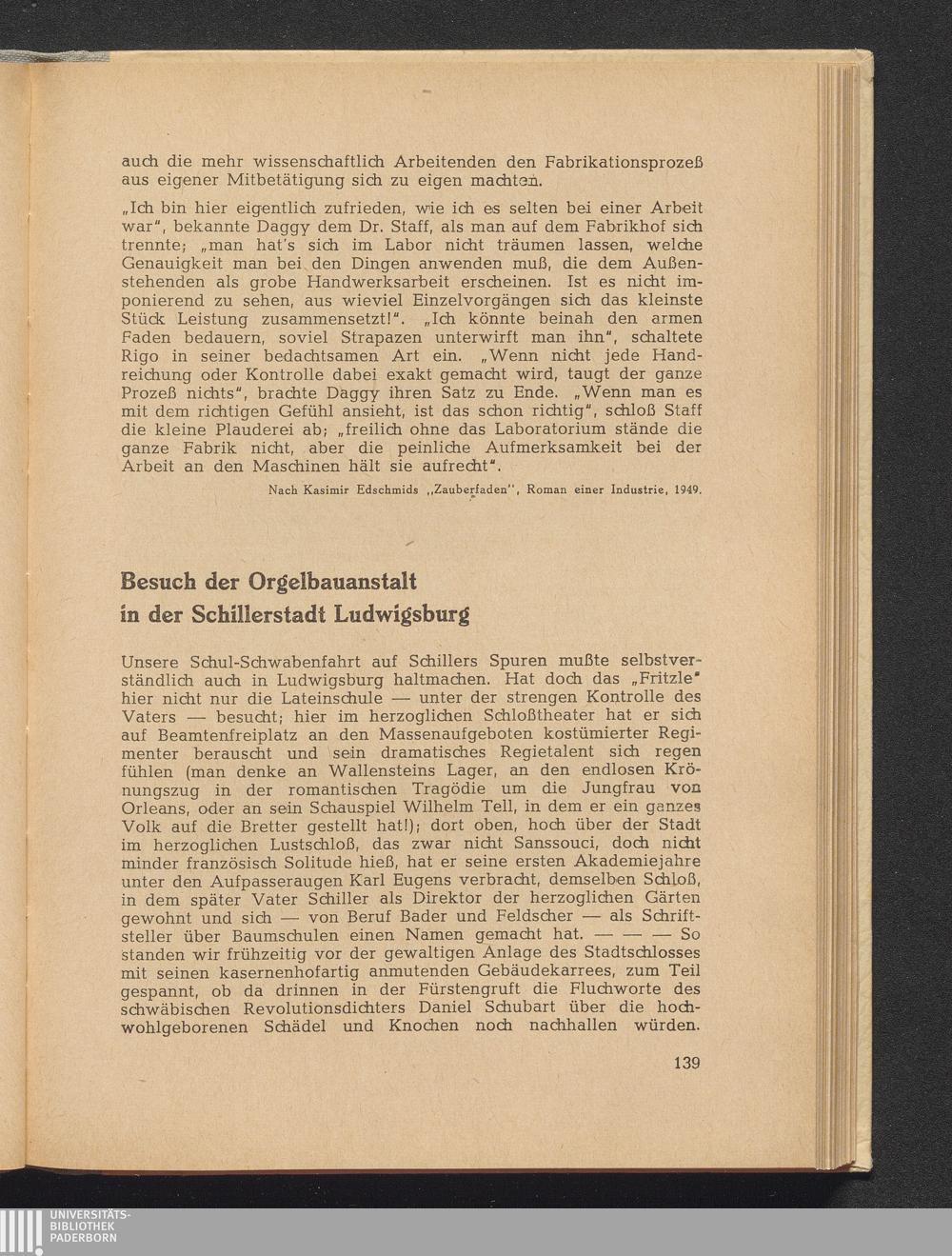 Blume, Wilhelm Besuch der Orgelbauanstalt in der Schillerstadt Ludwigsburg