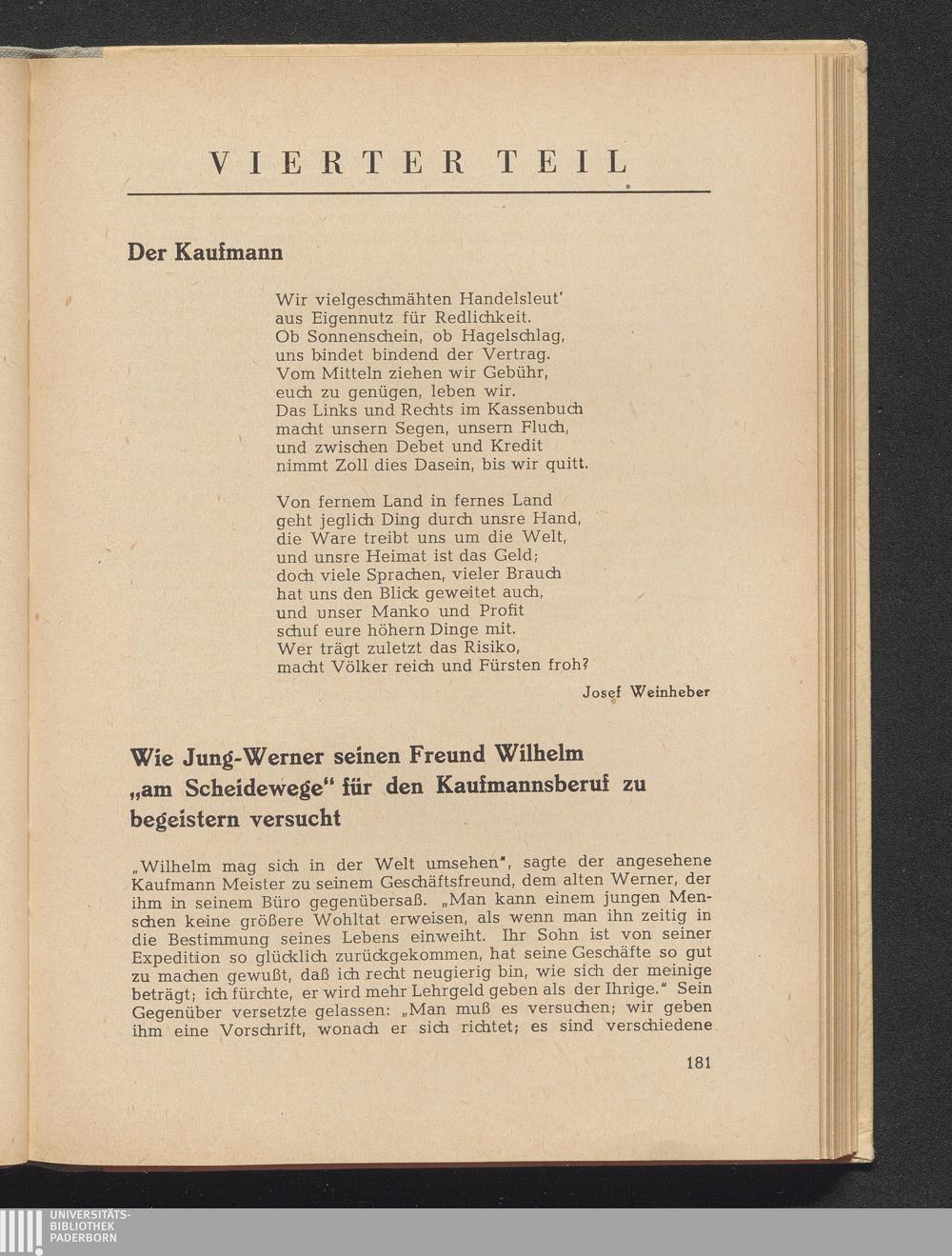 Der Mensch in der Berufsarbeit : ein Lese- und Arbeitsbuch für das Abschlußjahr der Volksschule (9. Schuljahr) zur Förderung der humanen Bildung / bearb. von Wilhelm Blume