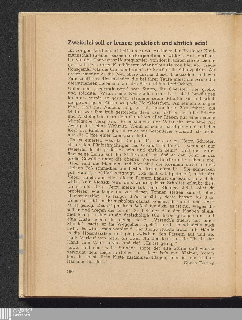Freytag, Gustav Zweierlei soll er lernen: praktisch und ehrlich sein!