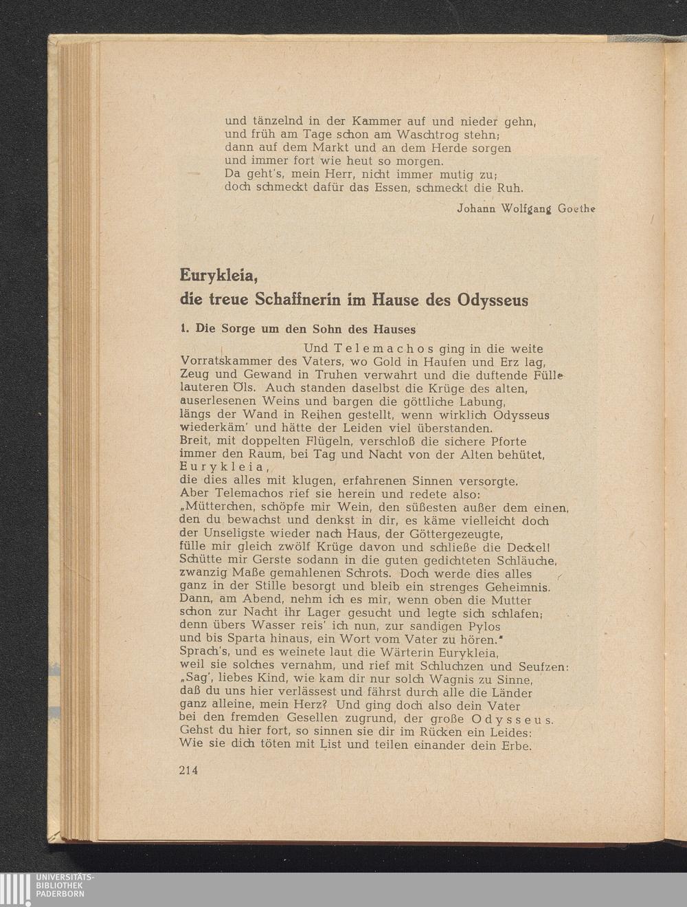 Homer Eurykleia, die treue Schaffnerin im Hause des Odysseus