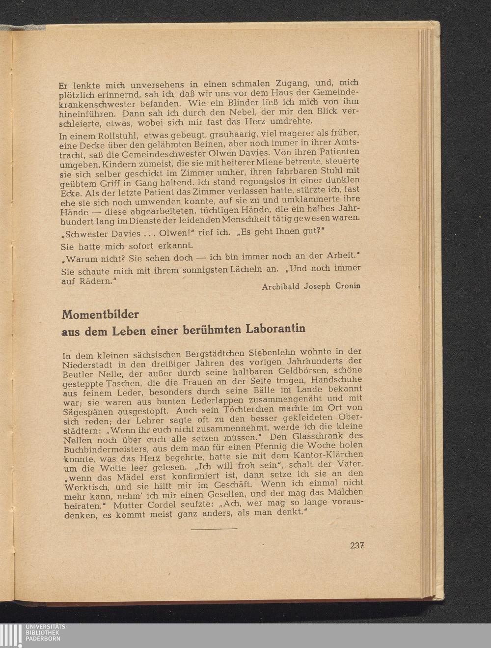 Blume, Wilhelm Momentbilder aus dem Leben einer berühmten Laborantin