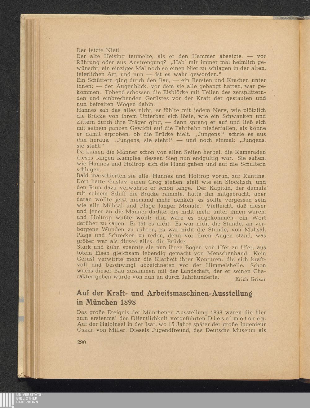 Diesel, Eugen Auf der Kraft- und Arbeitsmaschinen-Ausstellung in München 1898