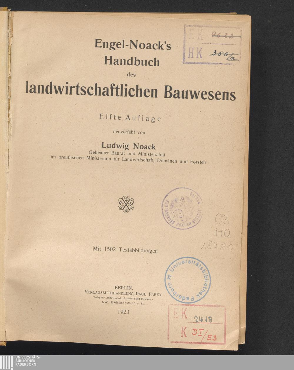 Engel-Noack's Handbuch des landwirtschaftlichen Bauwesens / neuverf. von Ludwig Noack