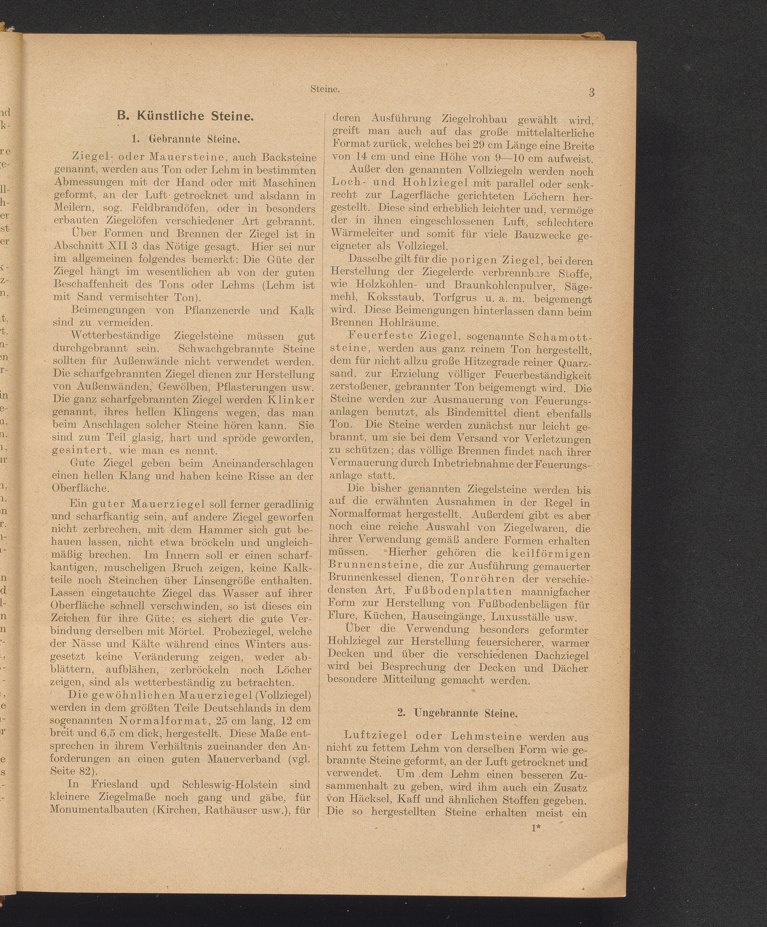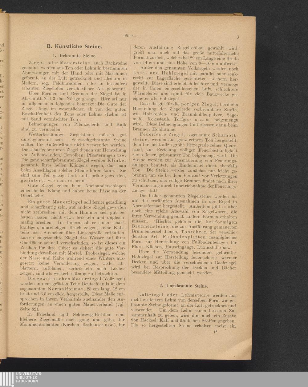 2. Ungebrannte Steine: Luftziegel oder Lehmsteine, Lehmpatzen, Kalksandsteine, Zementsteine,[...]