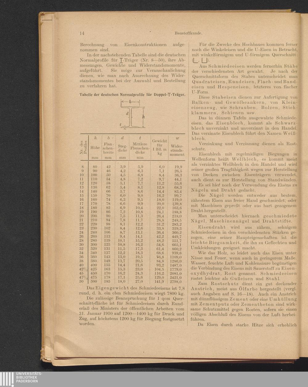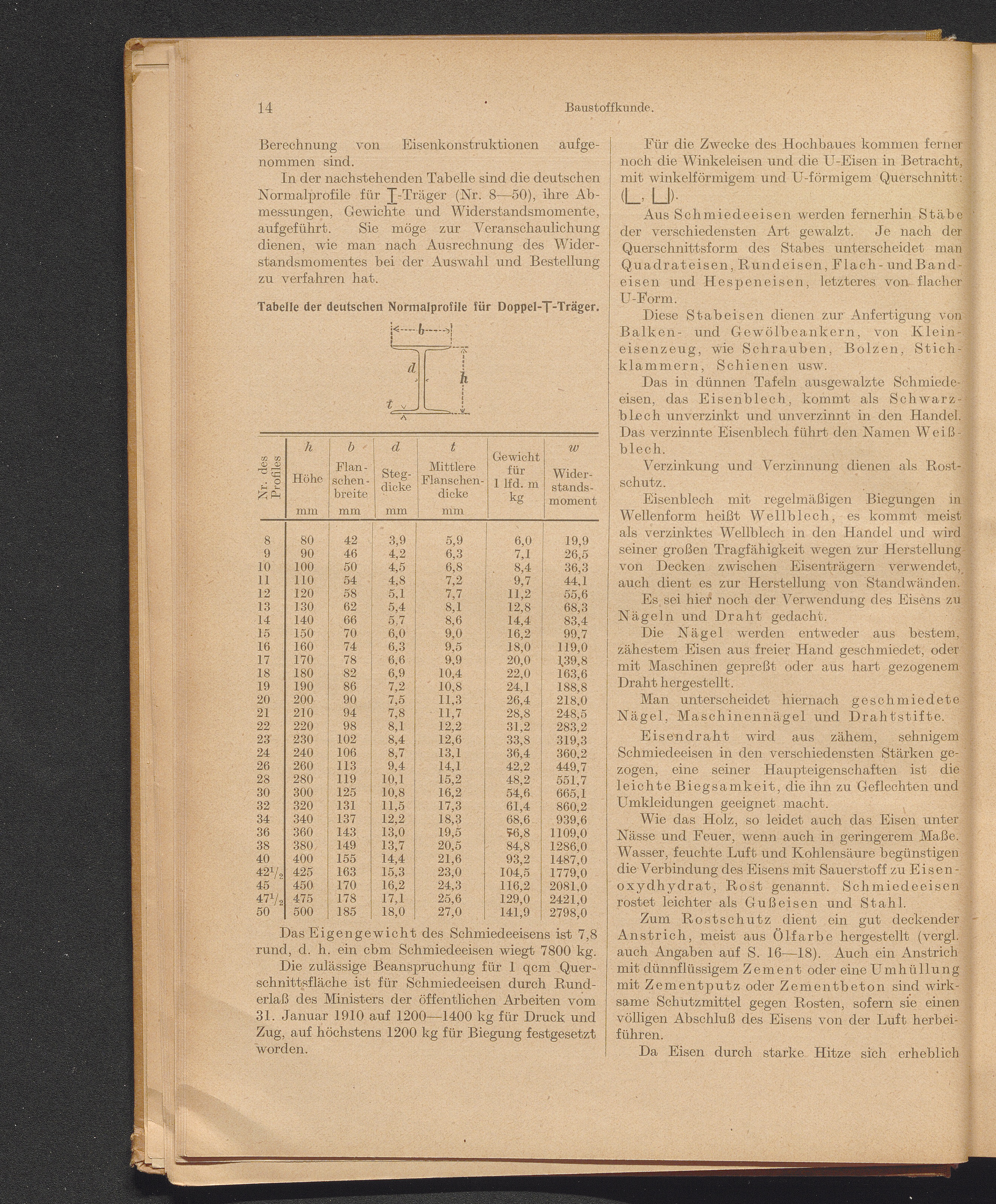 Das Eisen. Das Gußeisen: Fehler, Festigkeit, Eigengewicht, Tabelle zur Berechnung[...]