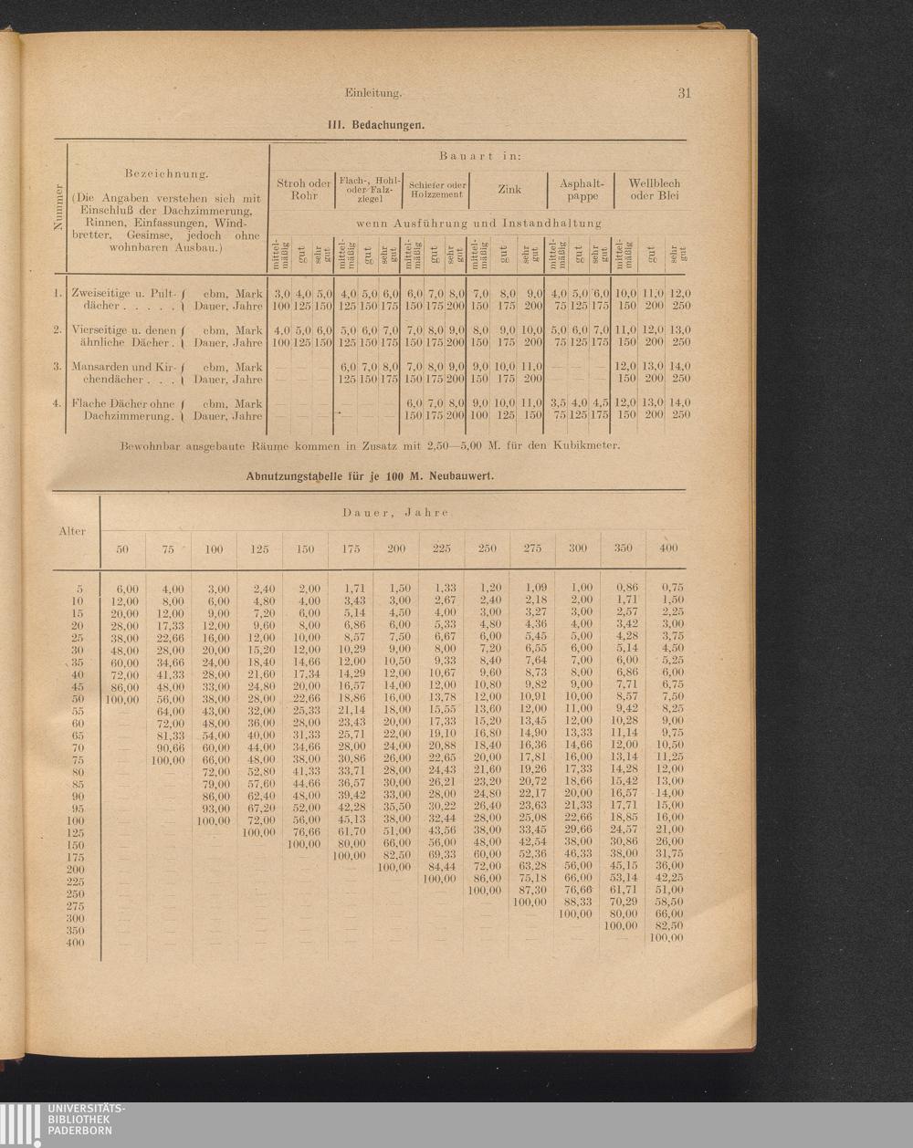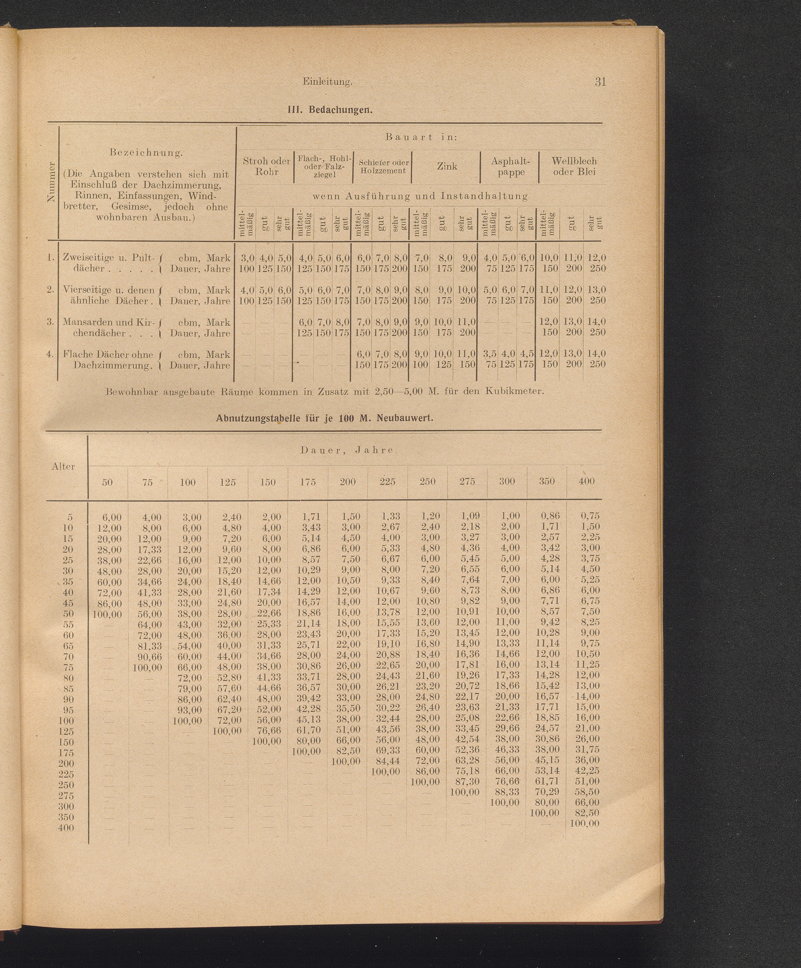 Abnutzungstabelle für je 100 M. Neubauwert