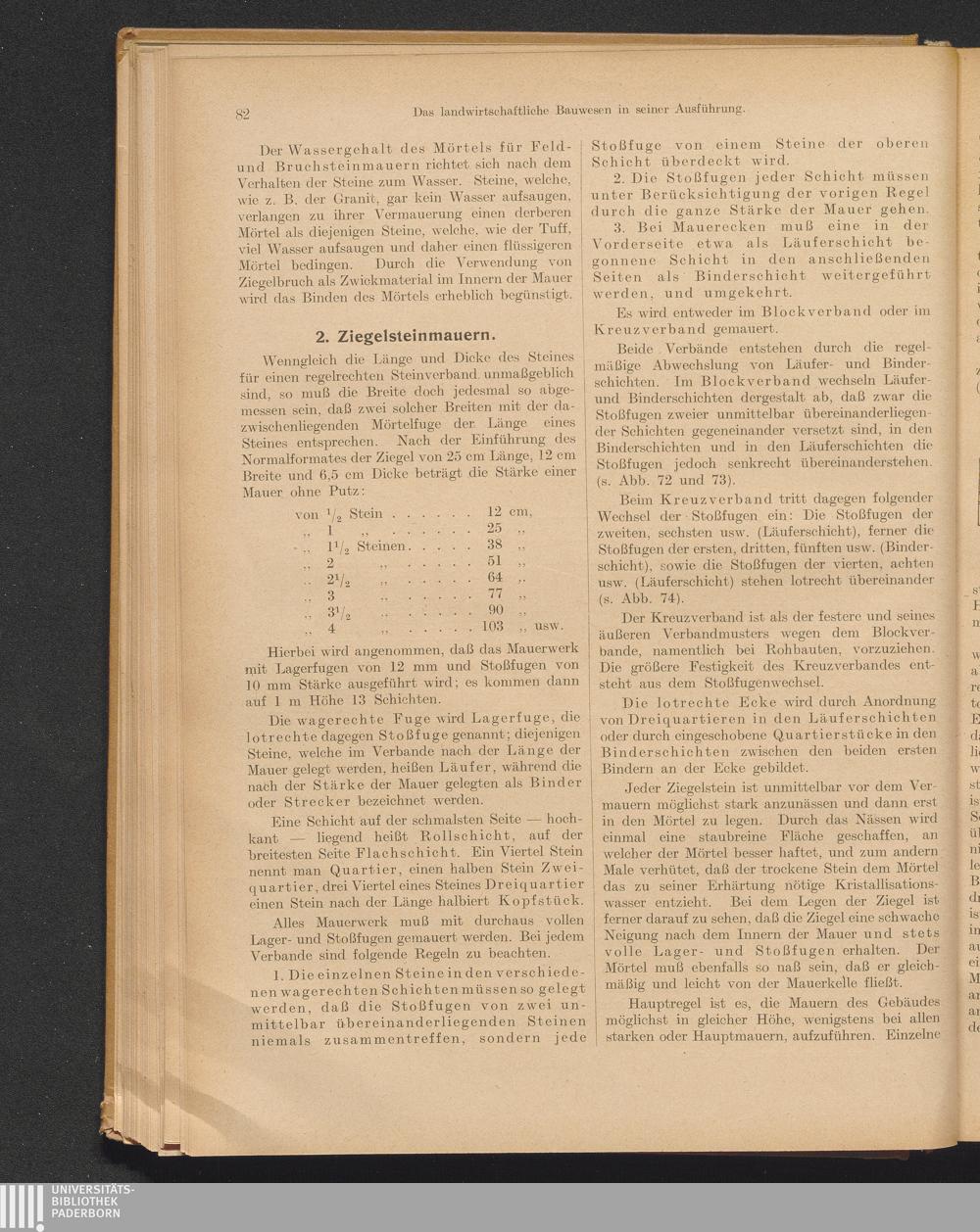 2. Ziegelsteinmauern: Mauerstärken, Verbandregeln, Tür- und Fensteröffnungen, Schornsteinanlagen,[...]