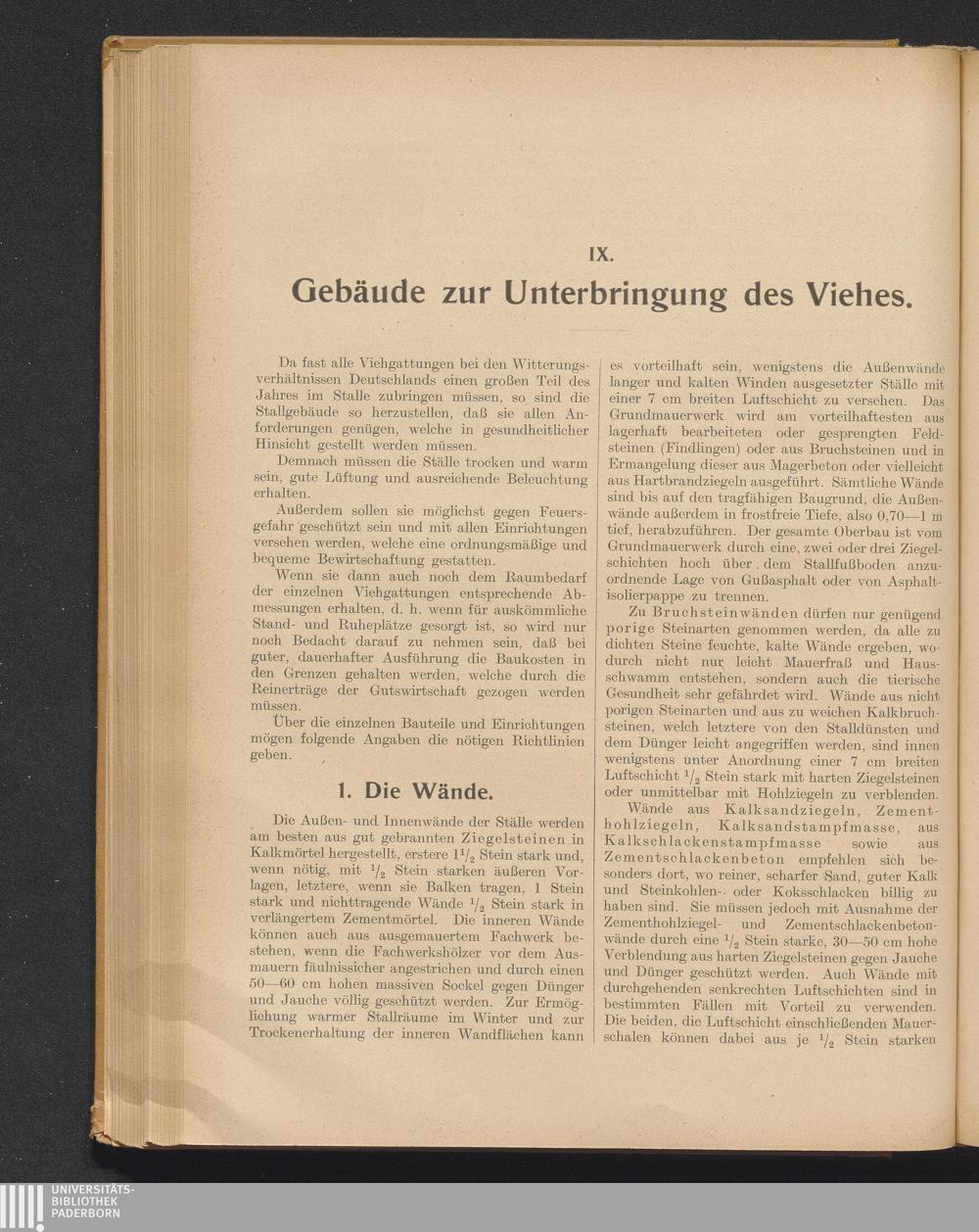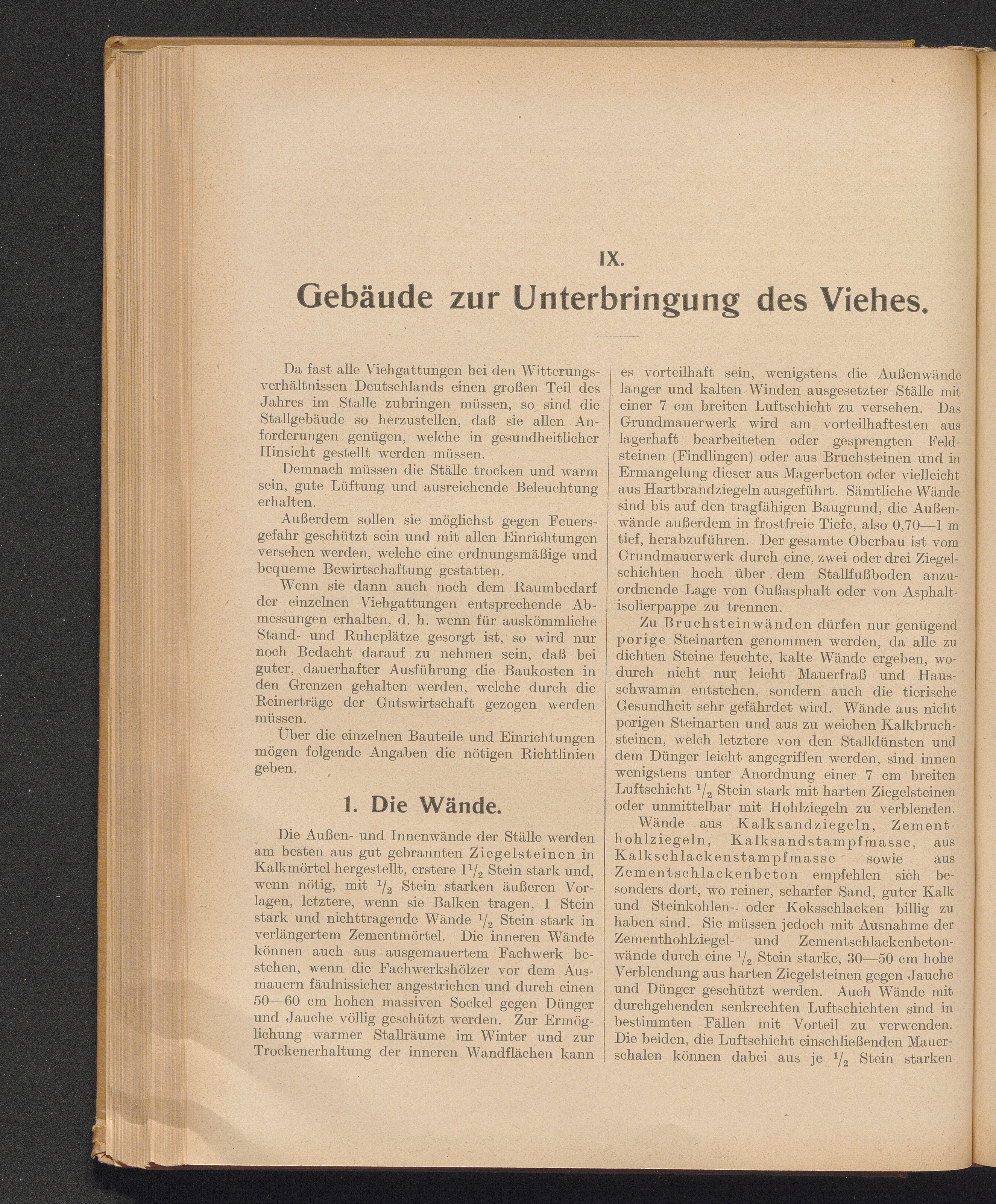 IX. Gebäude zur Unterbringung des Viehes. Allgemeine Bedingungen.