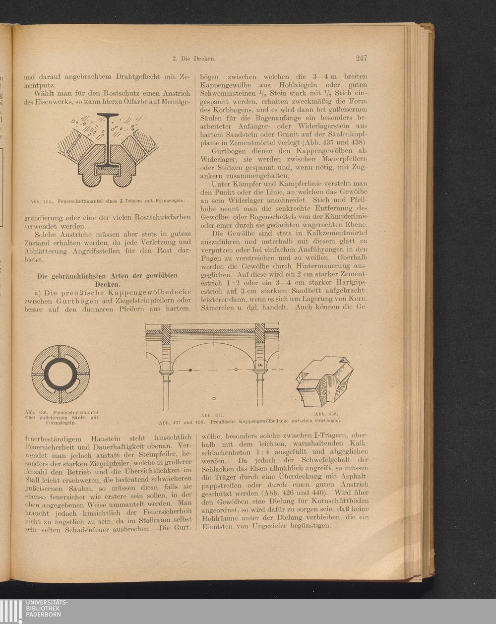 Die gebräuchlichsten Arten der gewölbten Decken: a) die preußische Kappengewölbedecke[...]