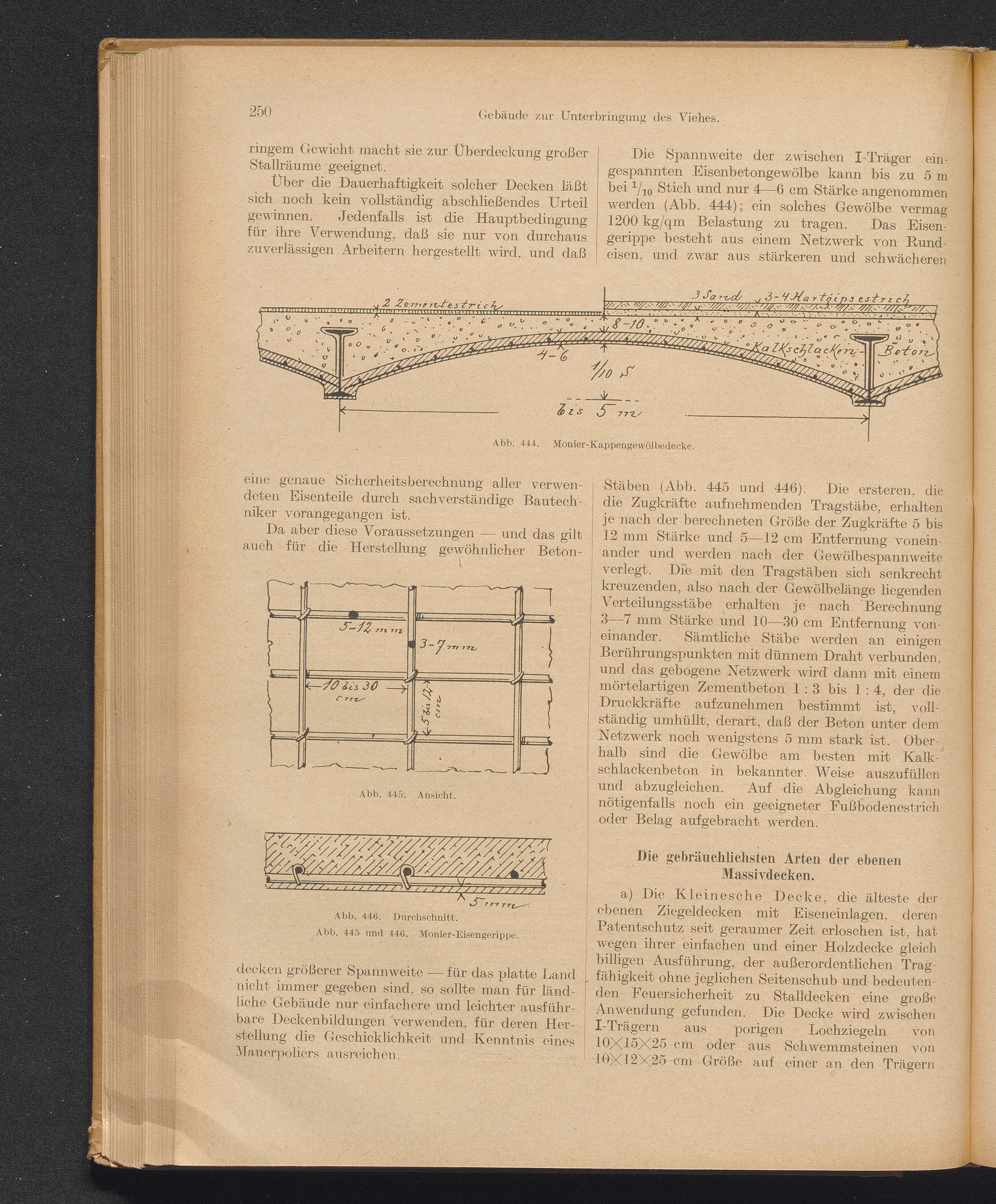 Die gebräuchlichsten Arten der ebenen Massivdecken: a) die Kleinesche Decke; b) Hohlsteindecken[...]