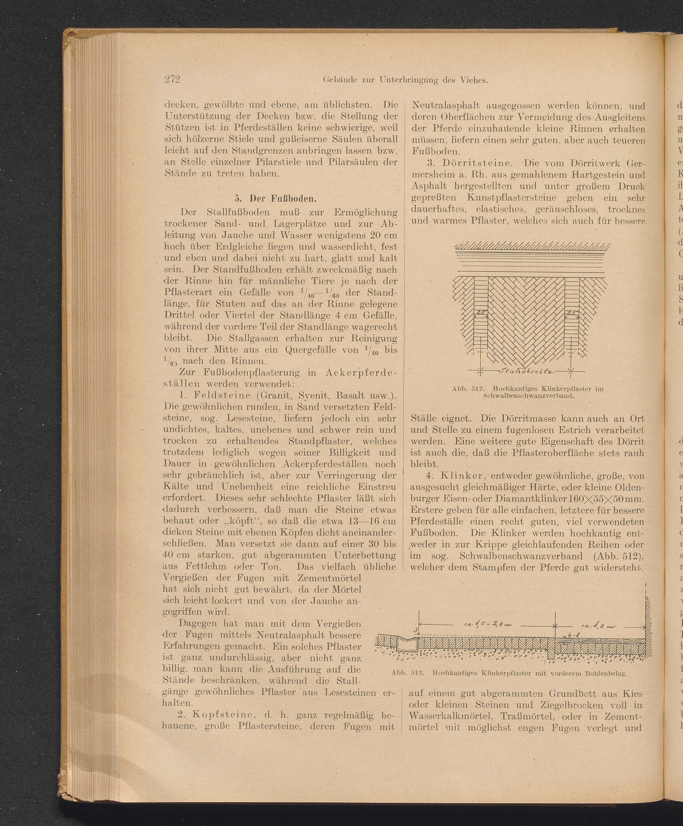 5. Der Fußboden: Pflasterung für Ackerpferdeställe aus Feldsteinen, Kopfsteinen,[...]
