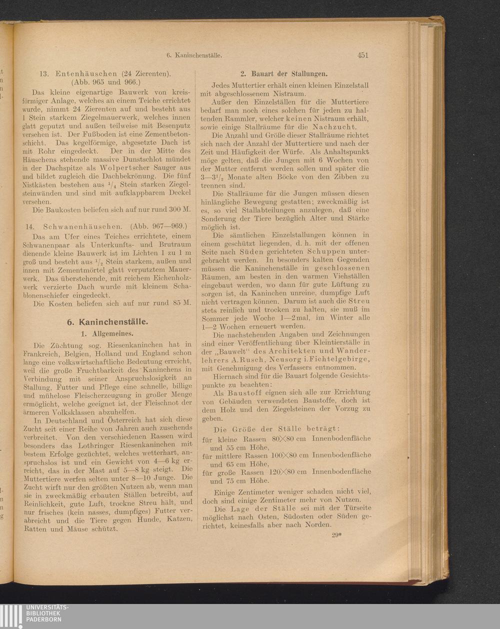 IX. Gebäude zur Unterbringung des Viehes. Allgemeine Bedingungen.
