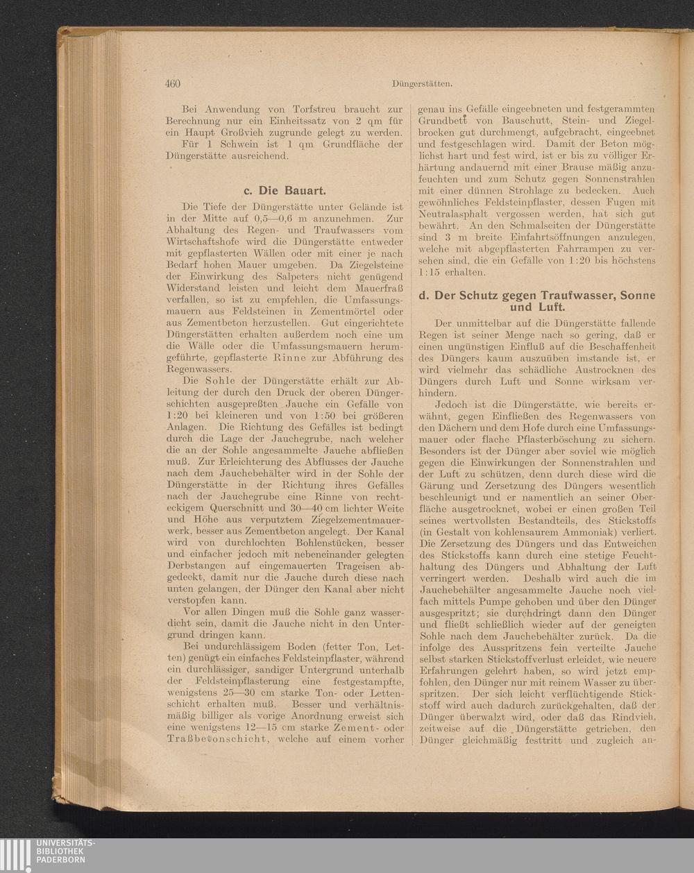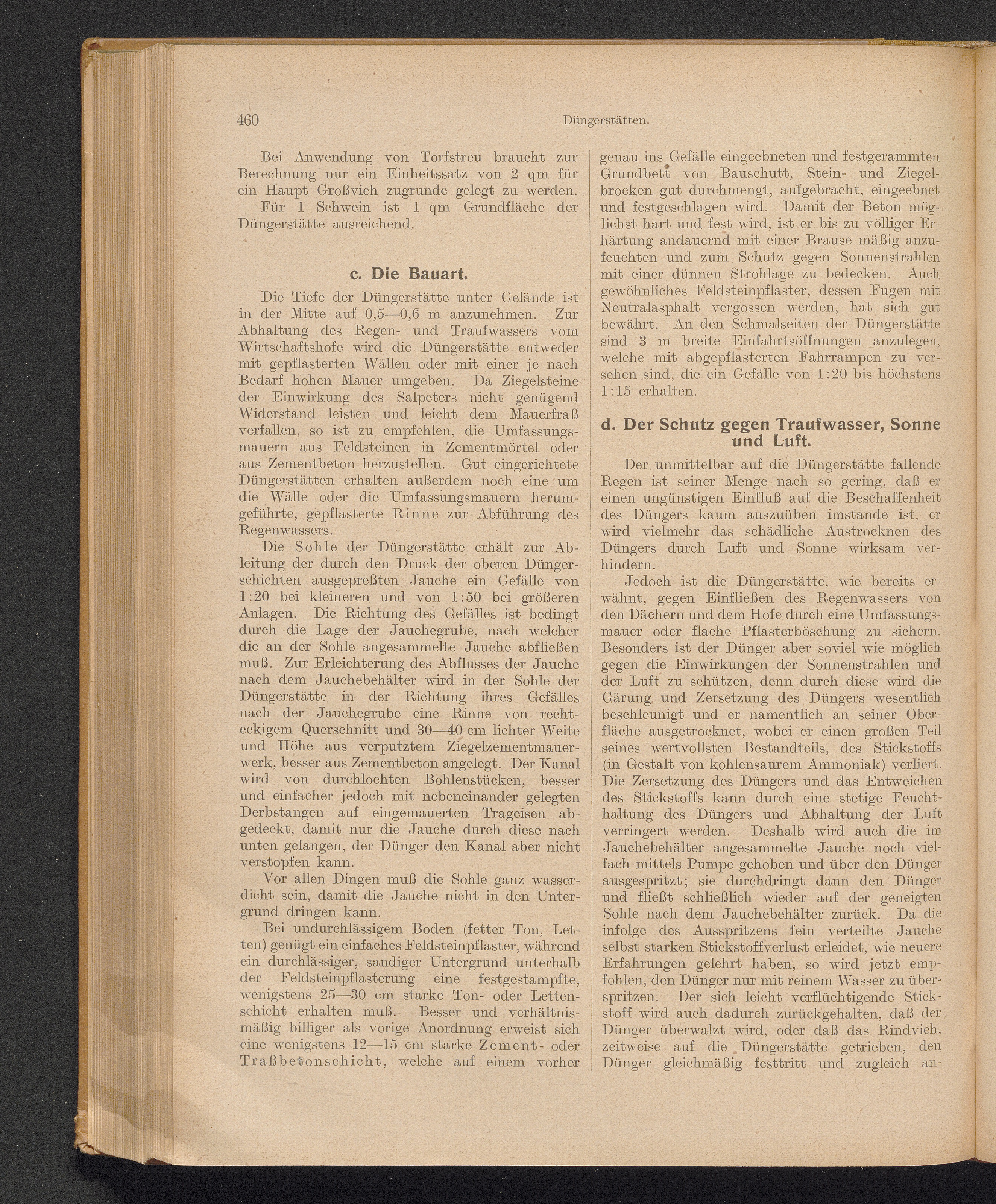 X. Düngerstätten. (Jauchebehälter, Aborte, Viehringe.)