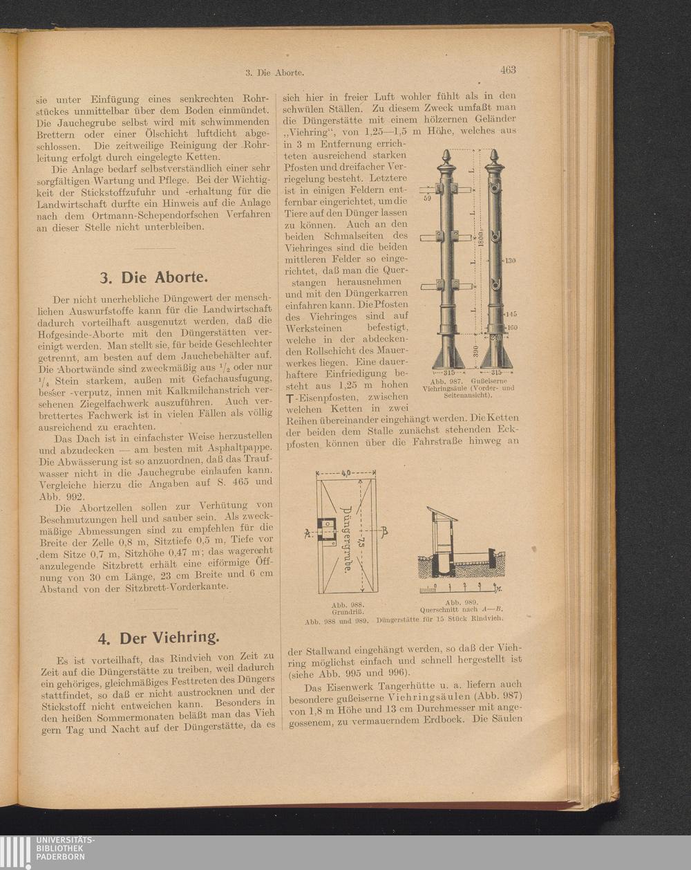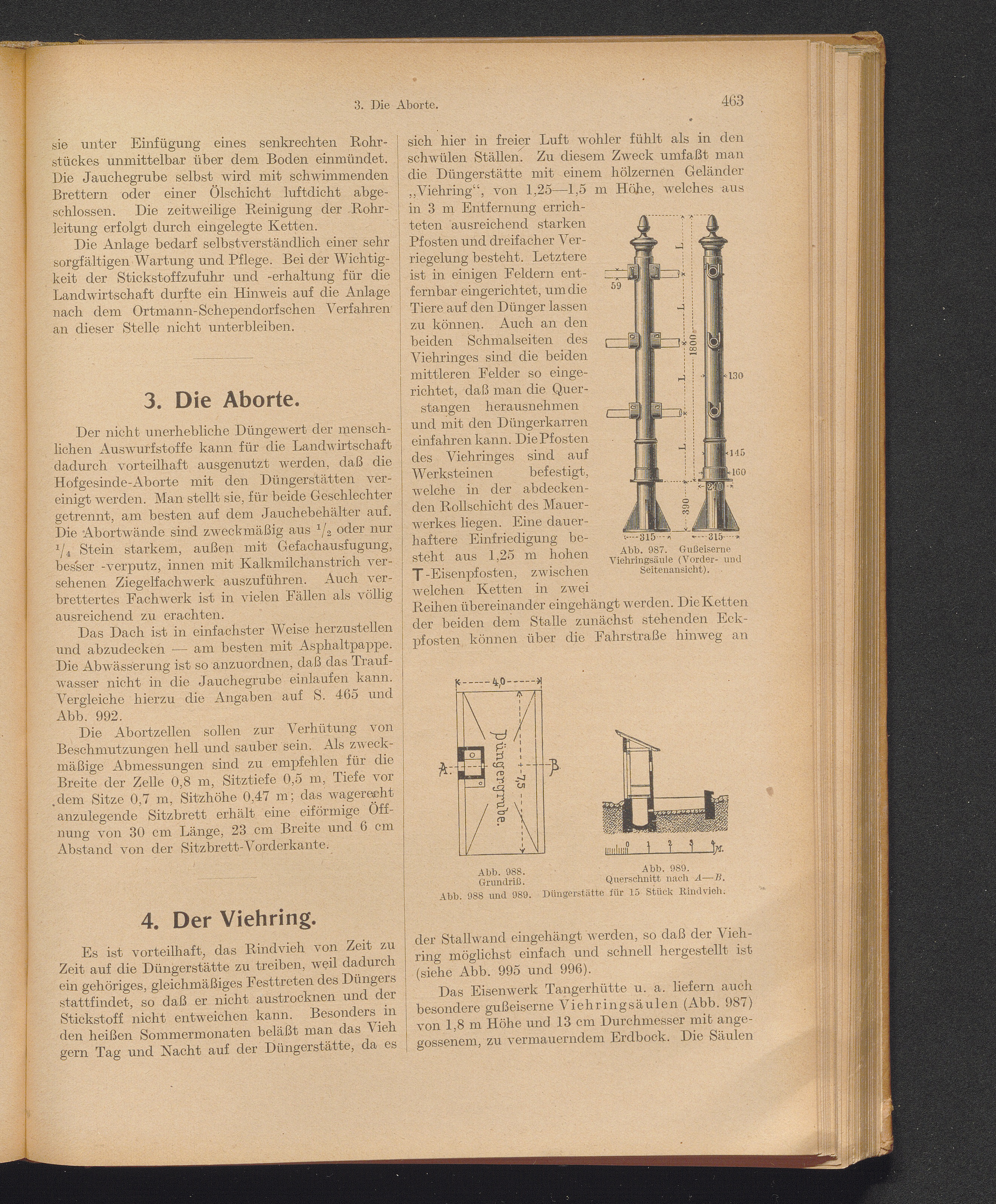 X. Düngerstätten. (Jauchebehälter, Aborte, Viehringe.)