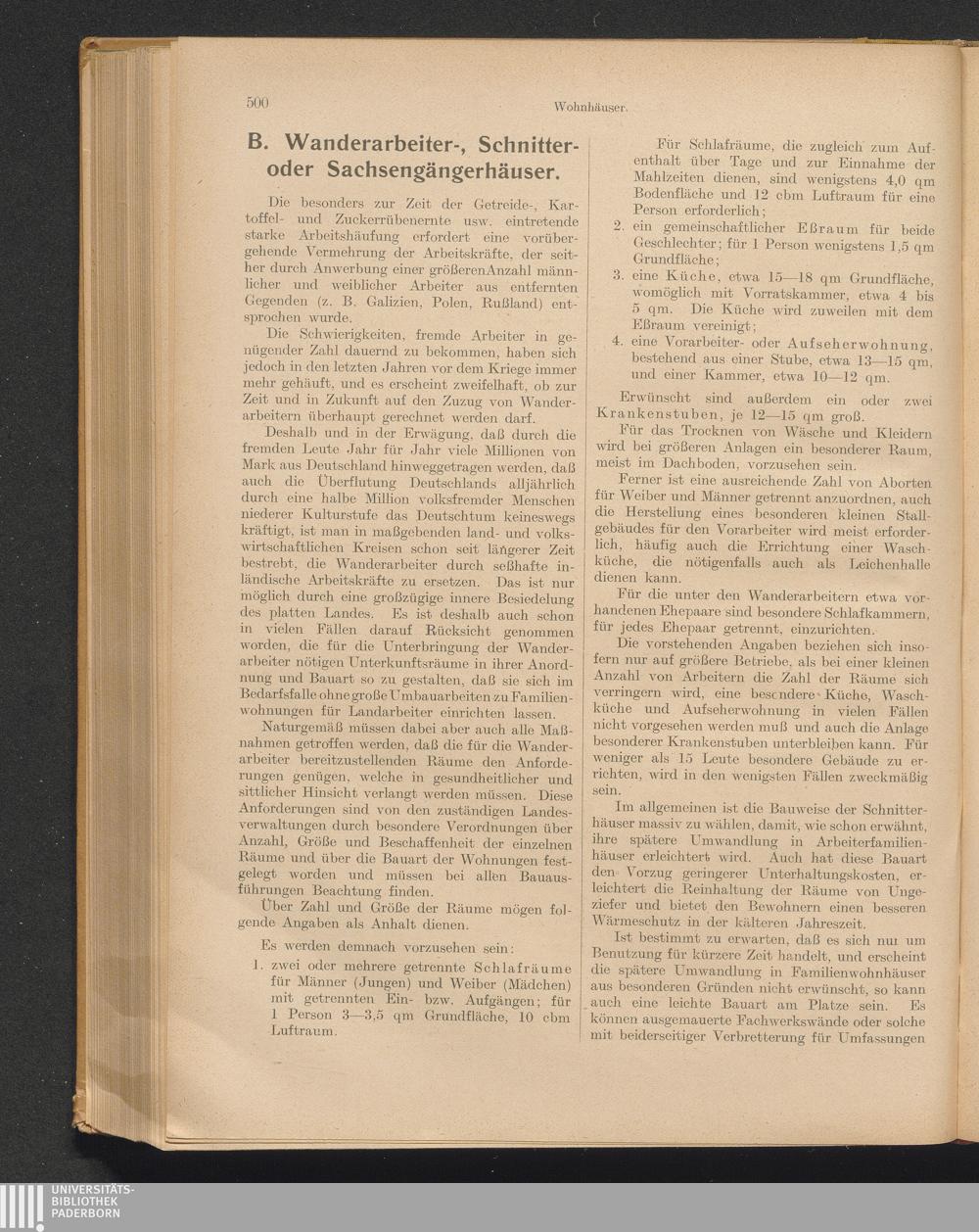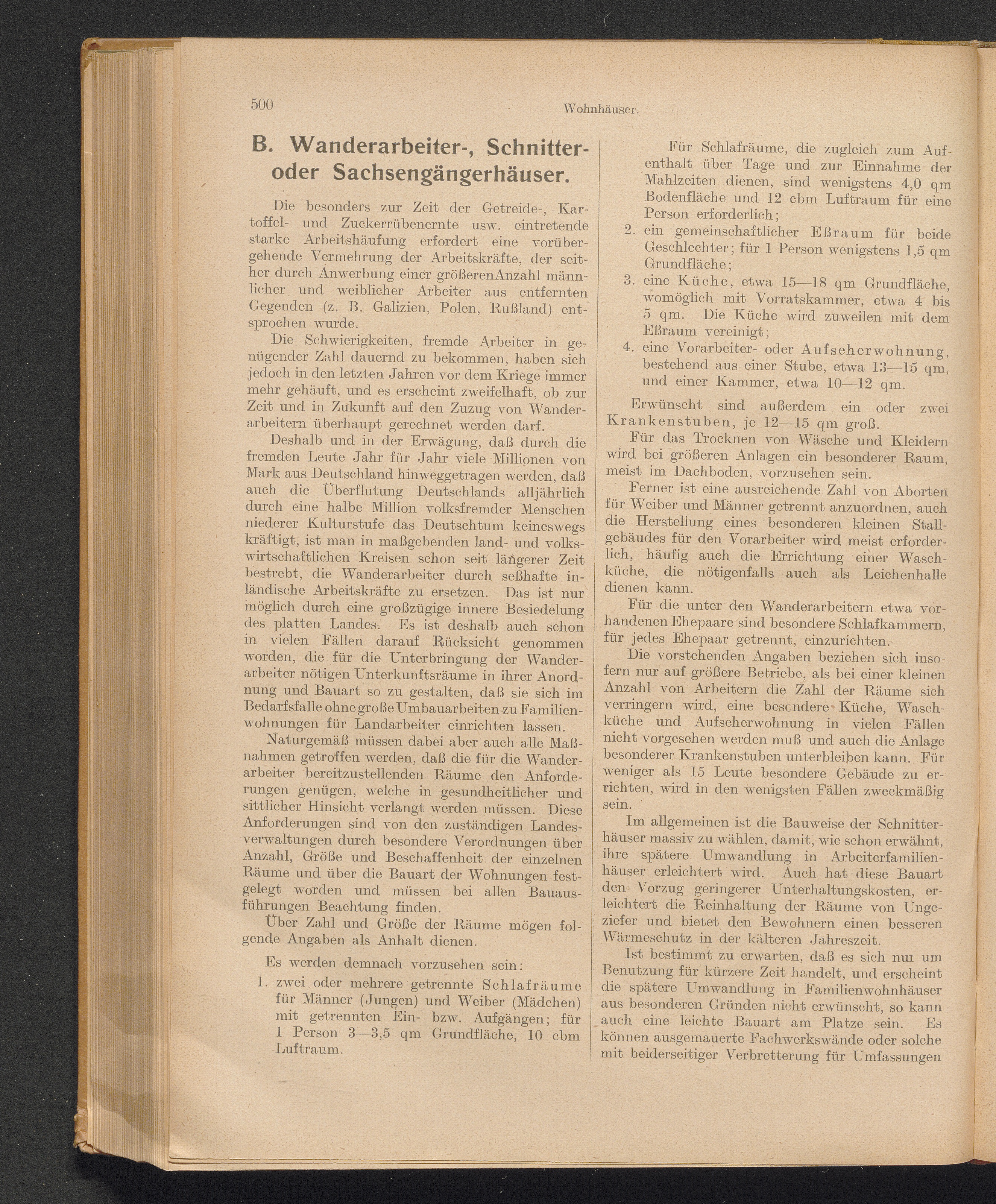 B. Wanderarbeiter-, Schnitter- oder Sachsengängerhäuser