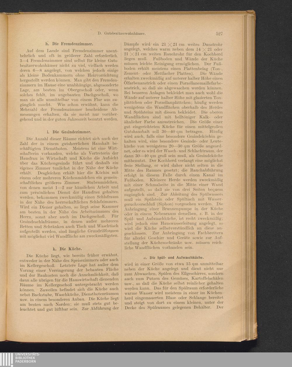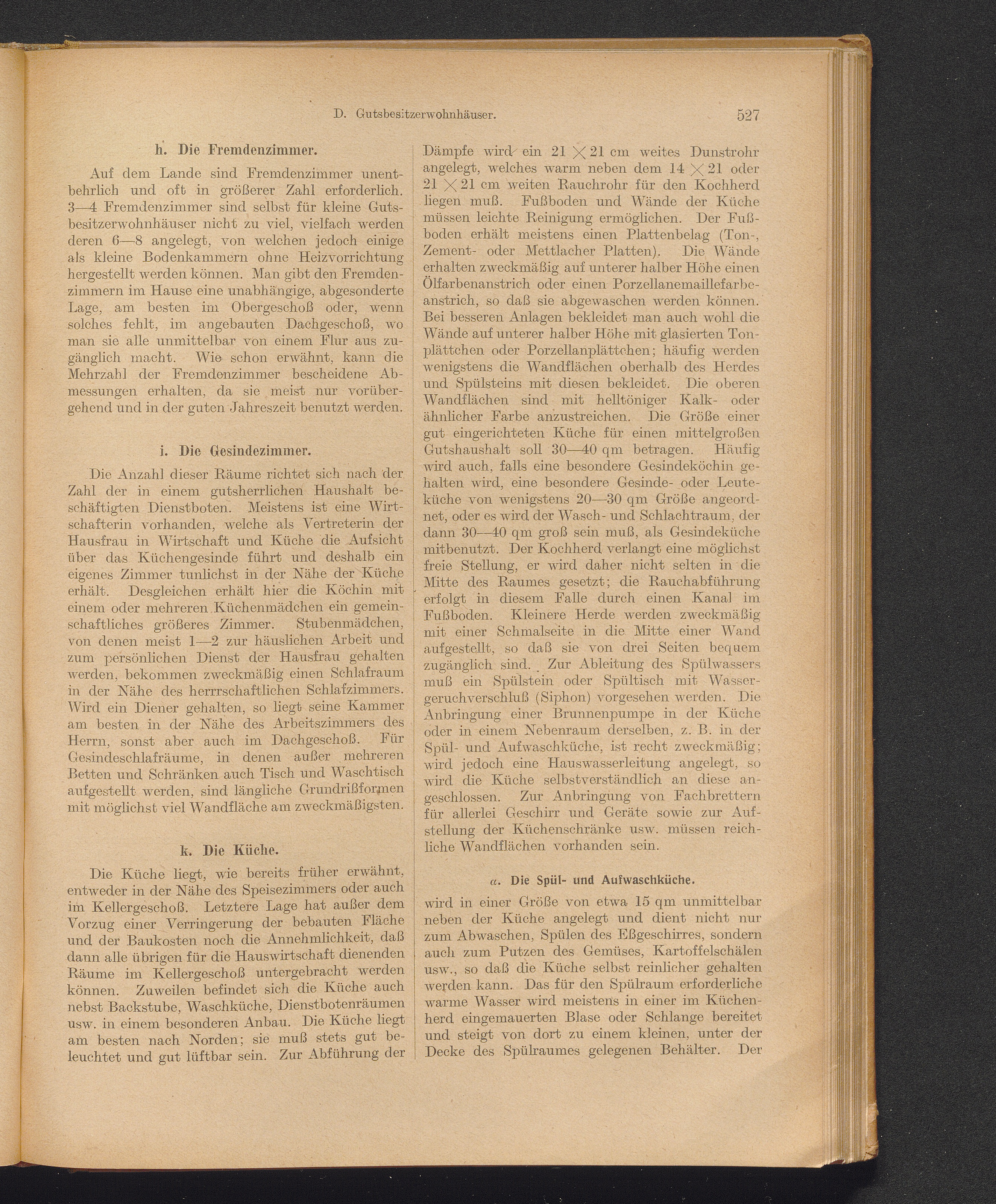 k) Die Küche: α) die Spül- und Aufwaschküche; β) die Speisekammern