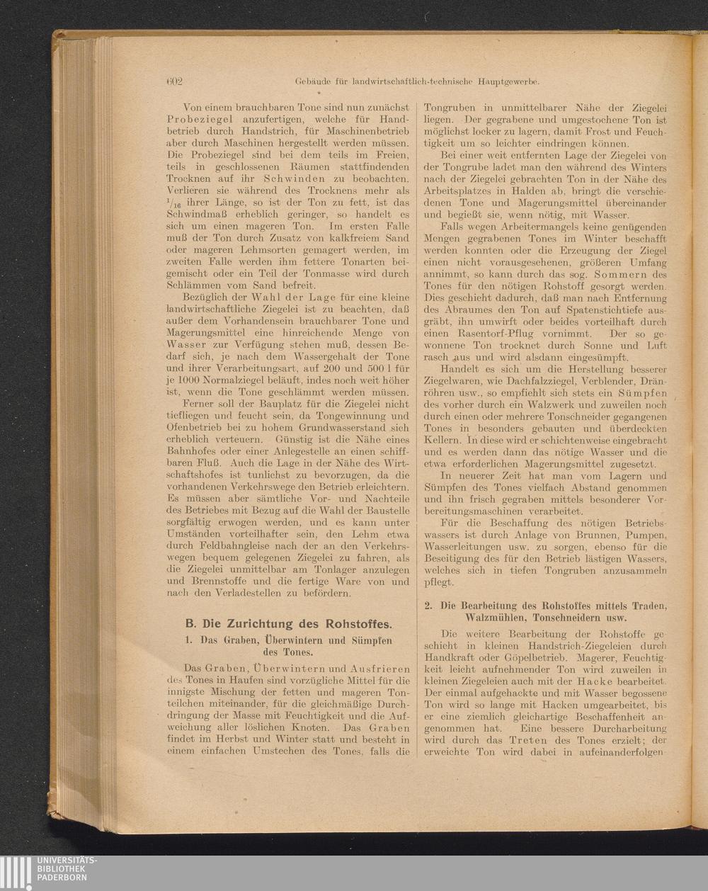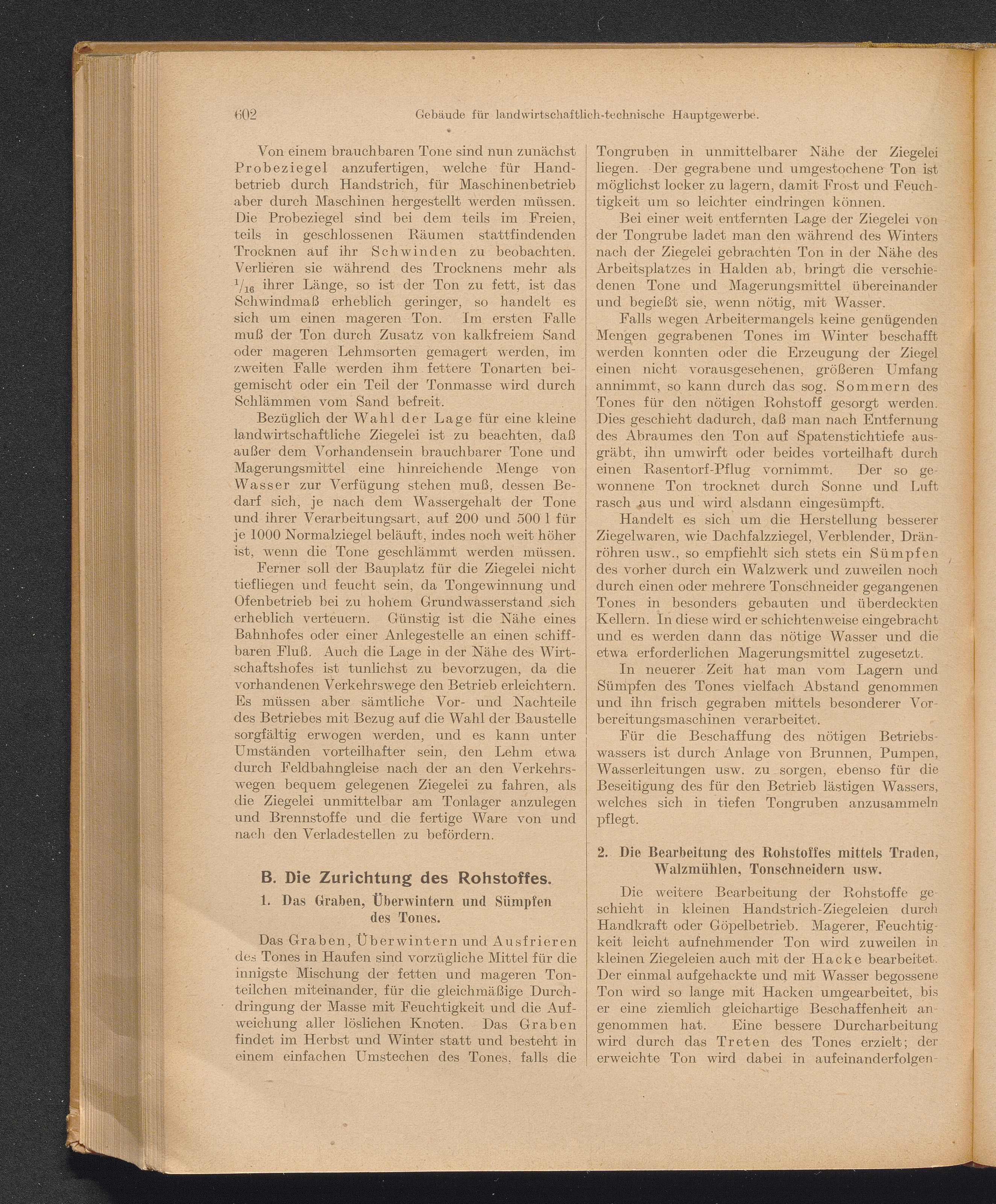 2. Die Bearbeitung des Rohstoffes mittels Traden, Walzmühlen, Tonschneidern usw.