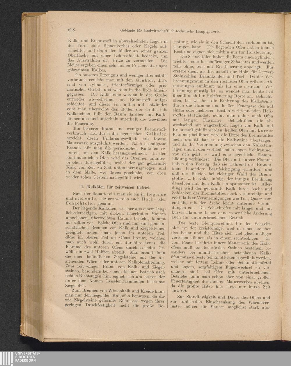 2. Kalköfen für zeitweisen Betrieb; liegende und stehende Kalköfen; Anlage und Bauart[...]