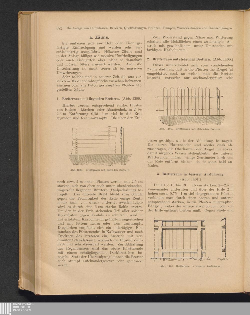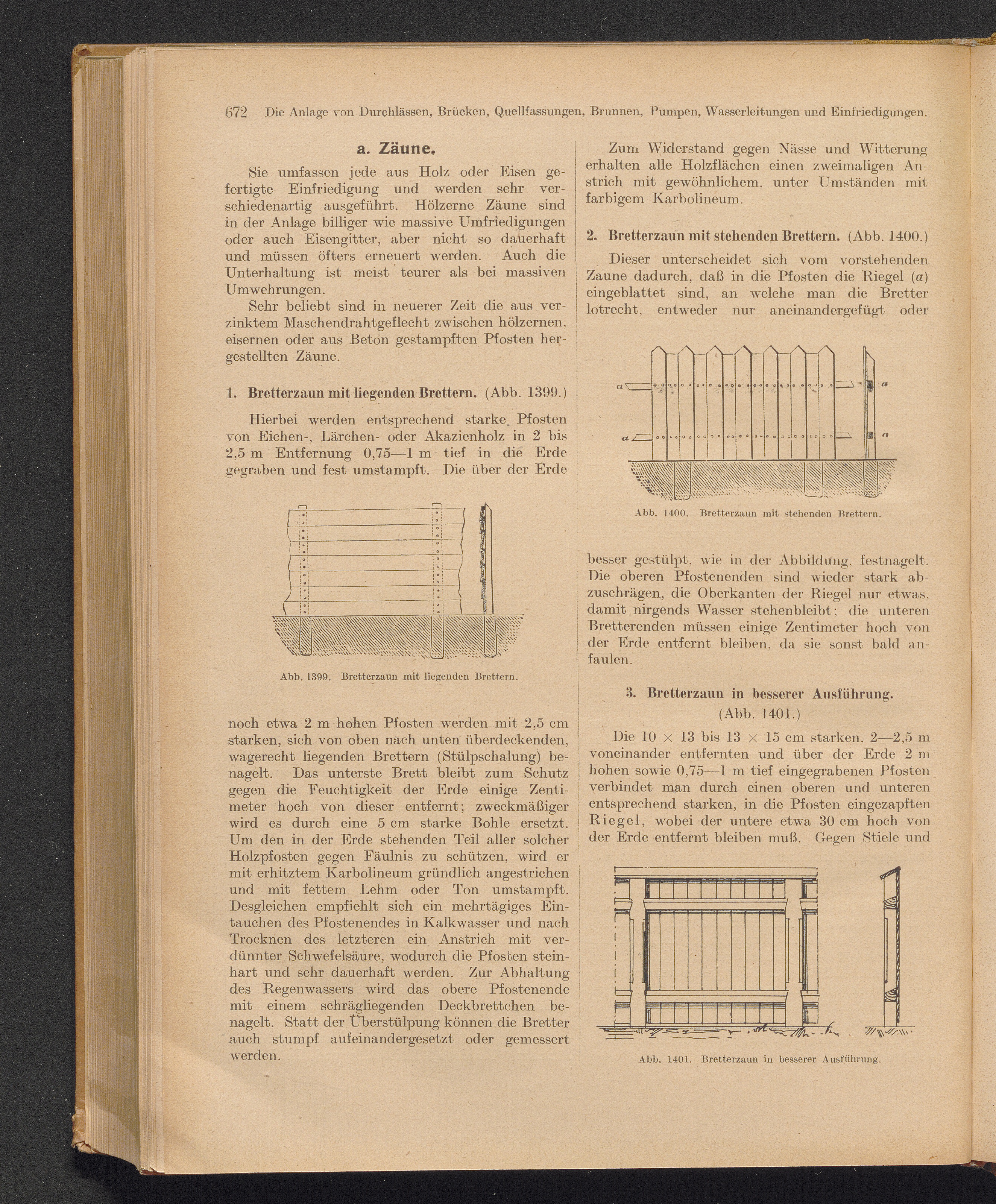 1. Bretterzaun mit liegenden Brettern, 2. Bretterzaun mit stehenden Brettern, 3.[...]