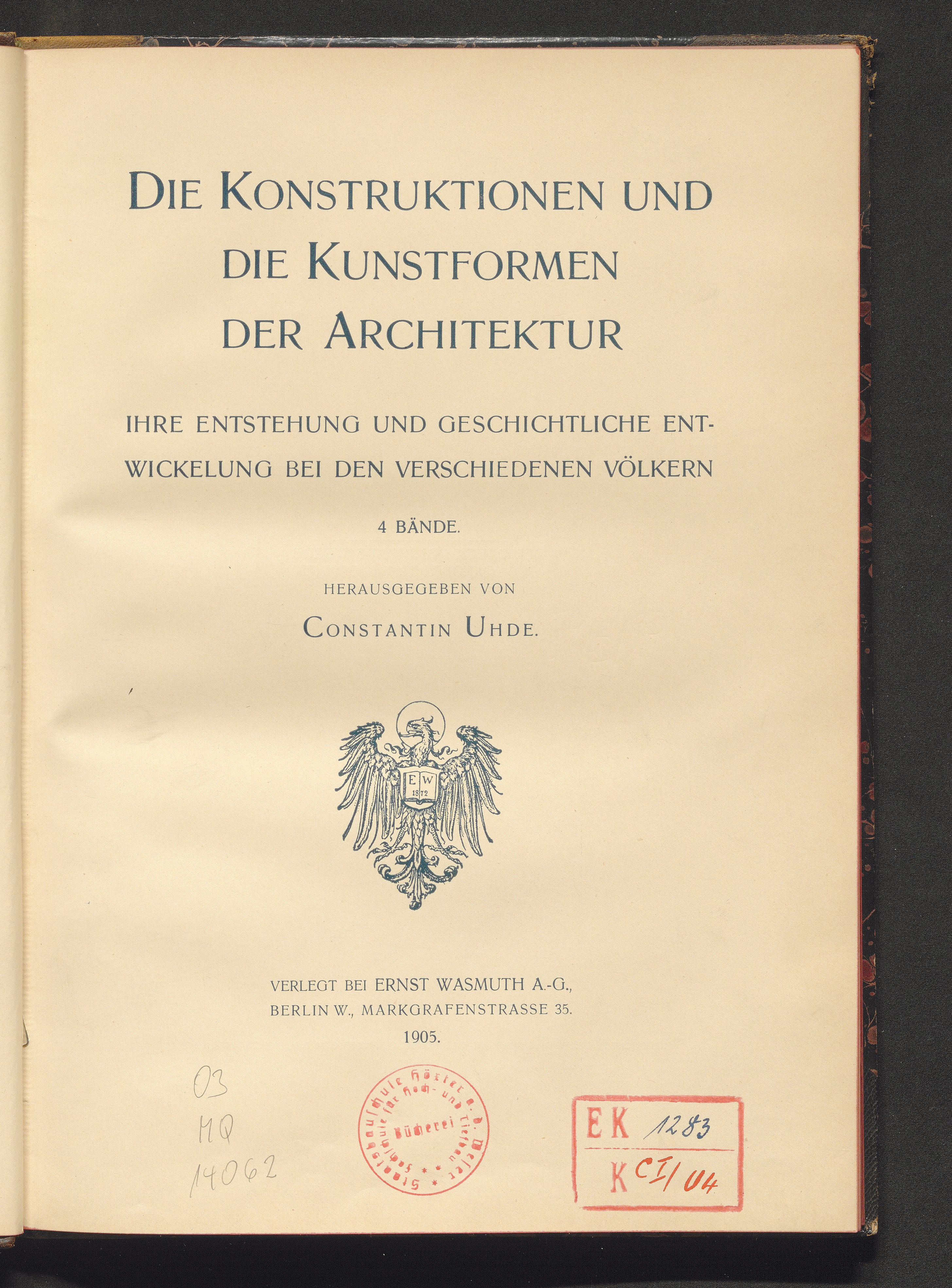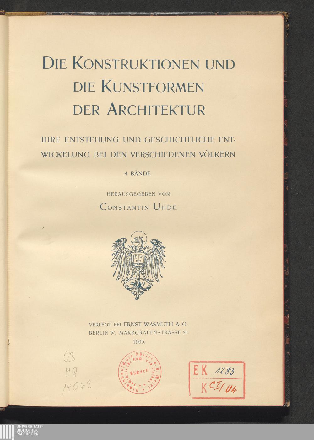 Der Steinbau in künstlichem Stein : die geschichtliche Entwickelung der Gesimse in den verschiedenen Baustilen / von Constantin Uhde