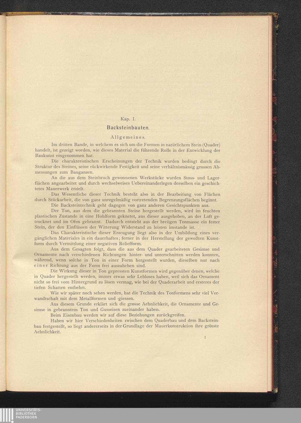 Der Steinbau in künstlichem Stein : die geschichtliche Entwickelung der Gesimse in den verschiedenen Baustilen / von Constantin Uhde