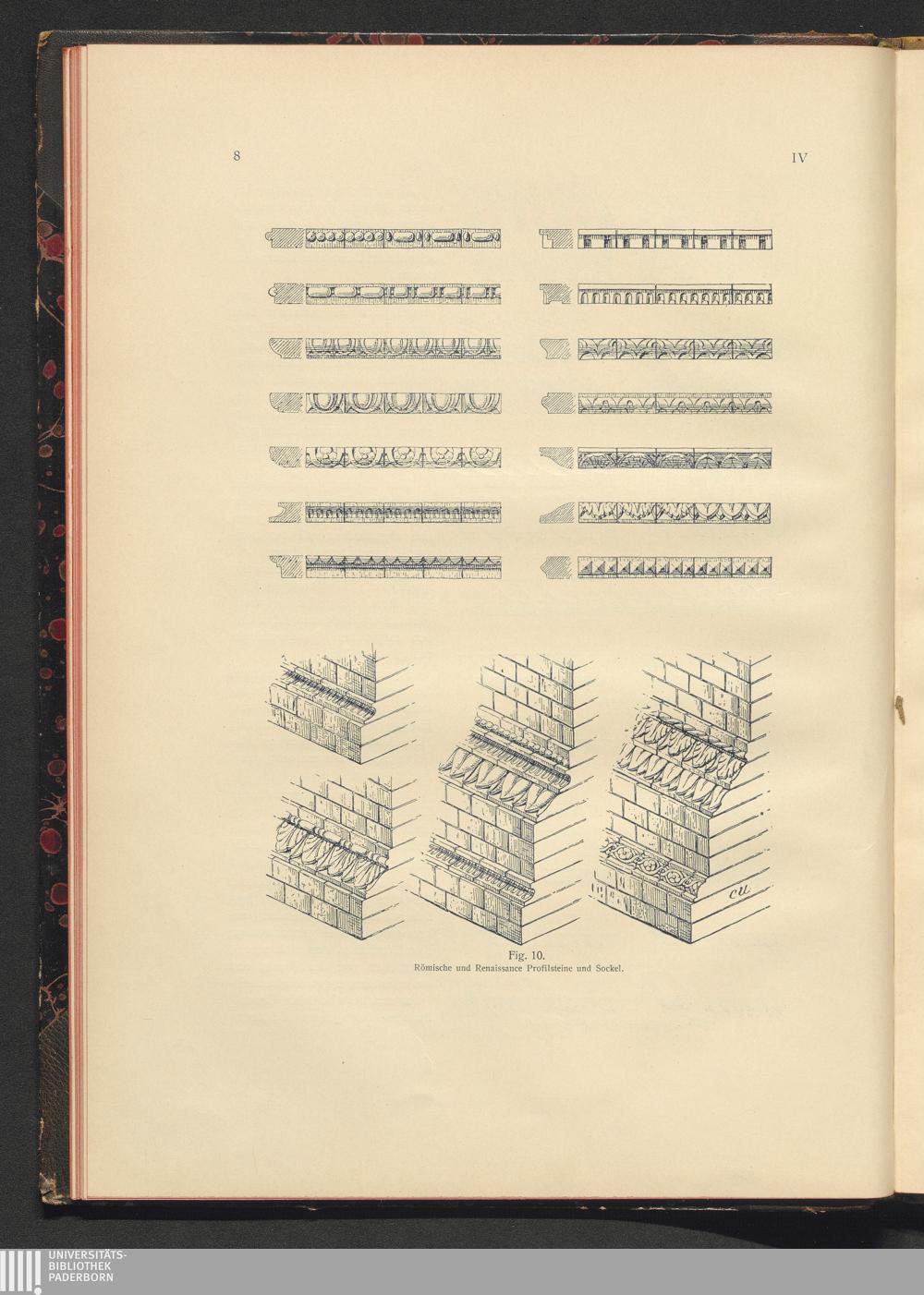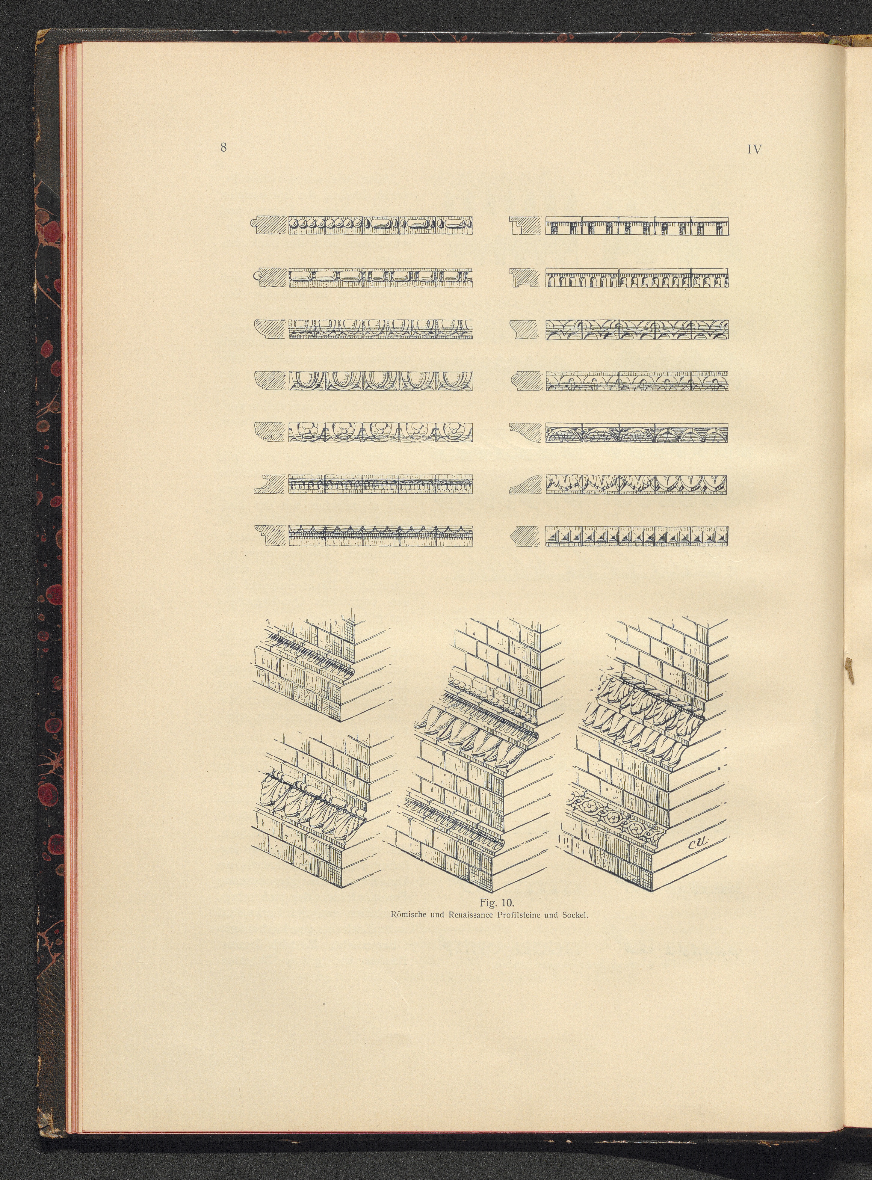 Der Steinbau in künstlichem Stein : die geschichtliche Entwickelung der Gesimse in den verschiedenen Baustilen / von Constantin Uhde