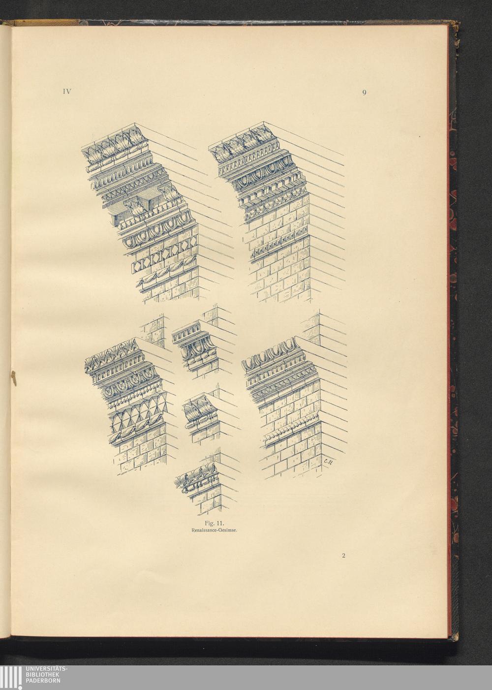 Der Steinbau in künstlichem Stein : die geschichtliche Entwickelung der Gesimse in den verschiedenen Baustilen / von Constantin Uhde