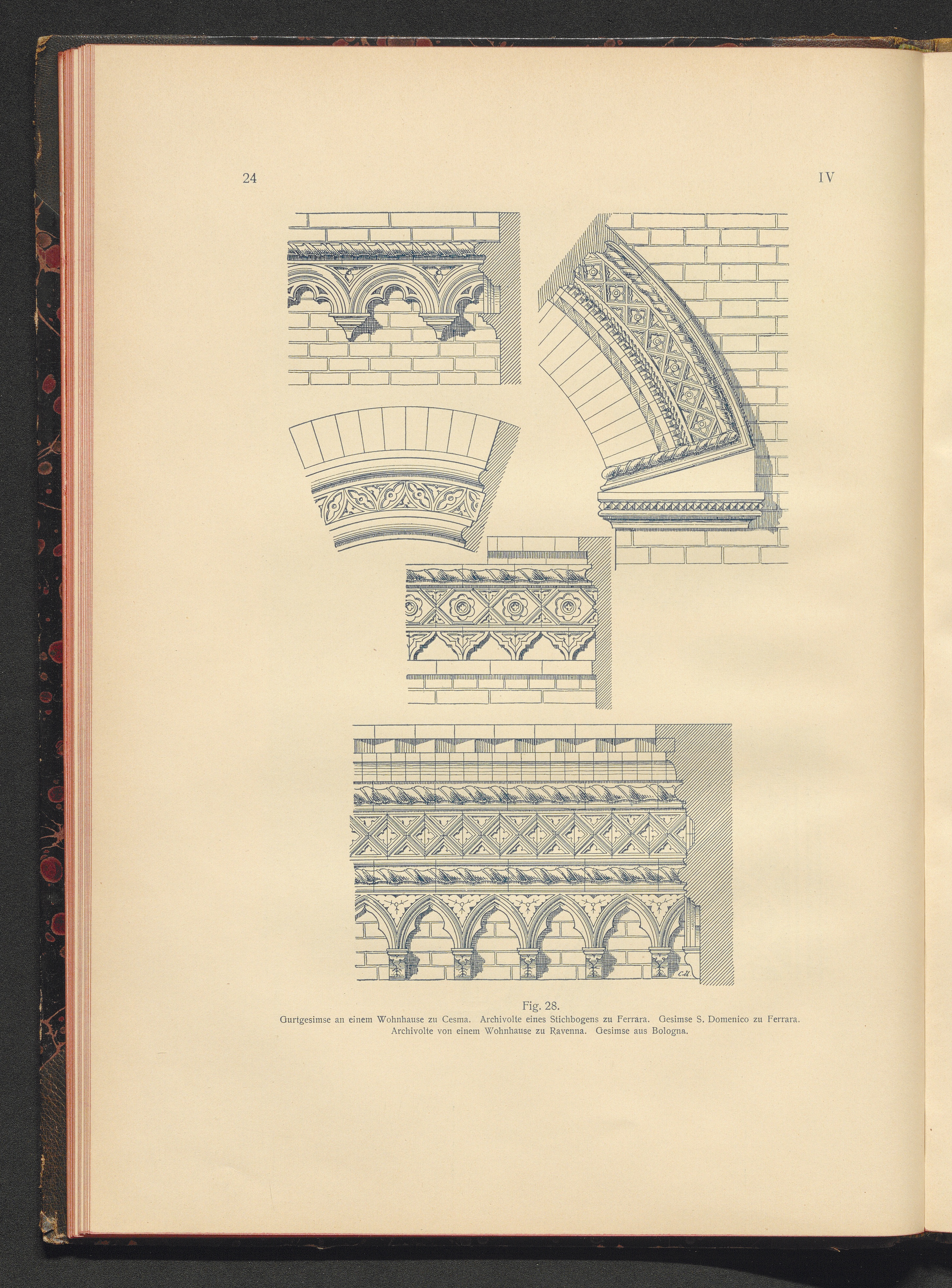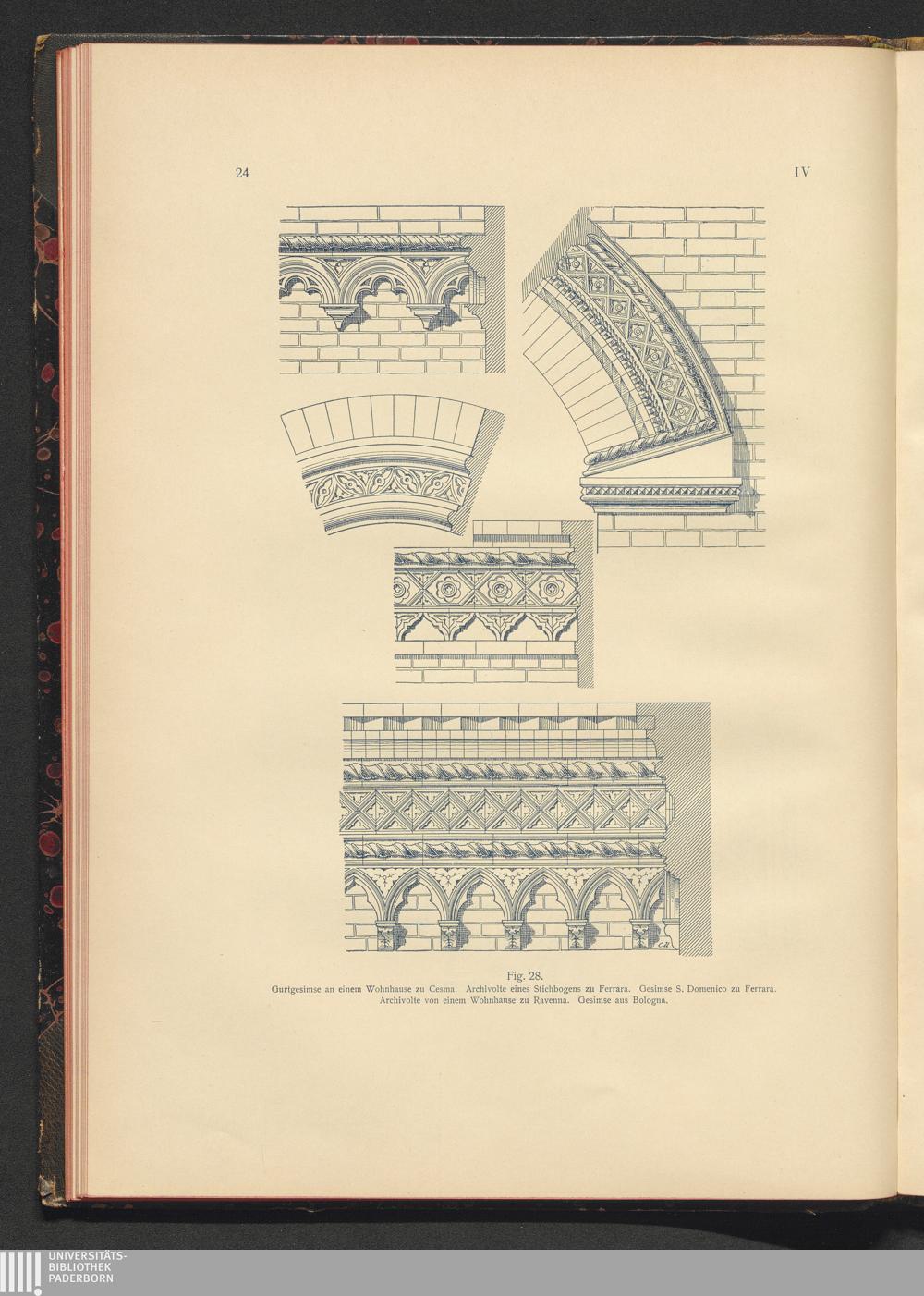 Der Steinbau in künstlichem Stein : die geschichtliche Entwickelung der Gesimse in den verschiedenen Baustilen / von Constantin Uhde
