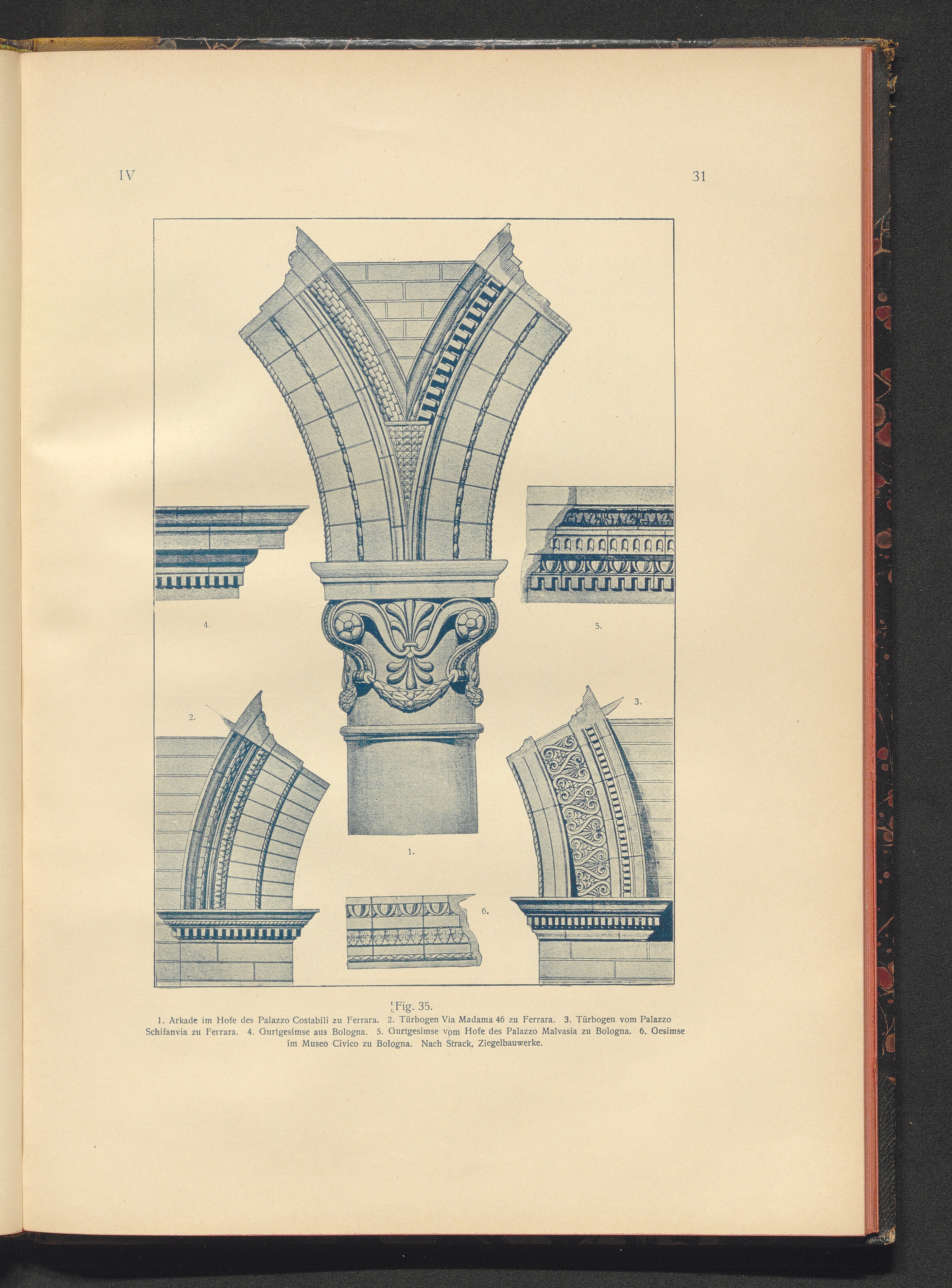 Der Steinbau in künstlichem Stein : die geschichtliche Entwickelung der Gesimse in den verschiedenen Baustilen / von Constantin Uhde