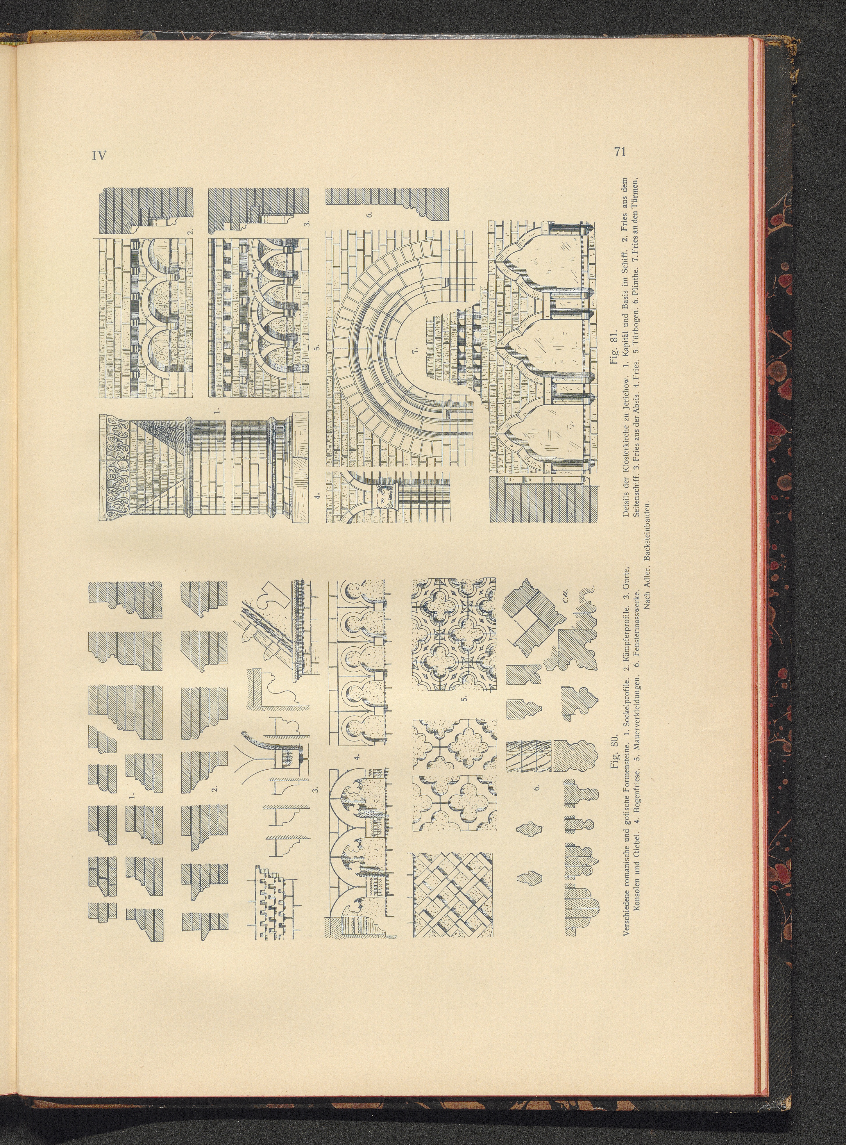 Der Steinbau in künstlichem Stein : die geschichtliche Entwickelung der Gesimse in den verschiedenen Baustilen / von Constantin Uhde