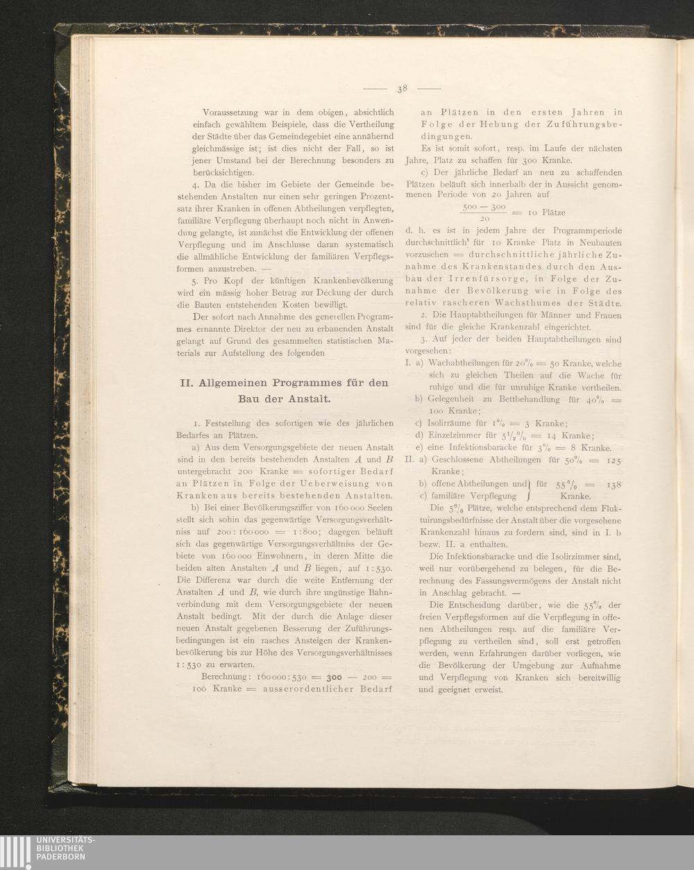 II. Allgemeinen Programmes für den Bau der Anstalt.