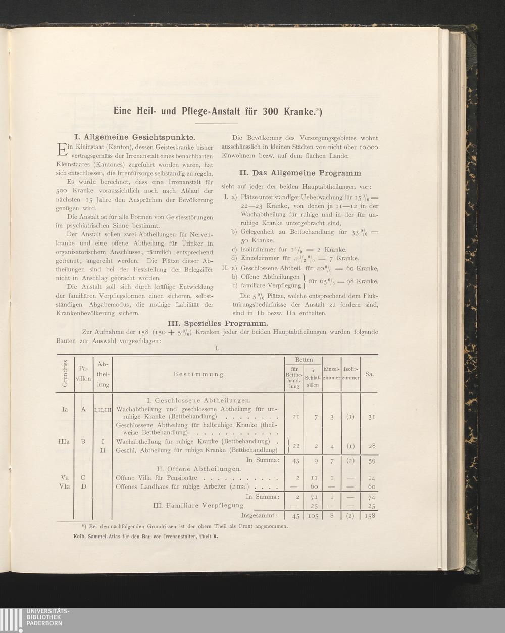A/B (1902) Sammel-Atlas für den Bau von Irrenanstalten : ein Handbuch für Behörden, Psychiater und Baubeamte / hrsg. von G. Kolb