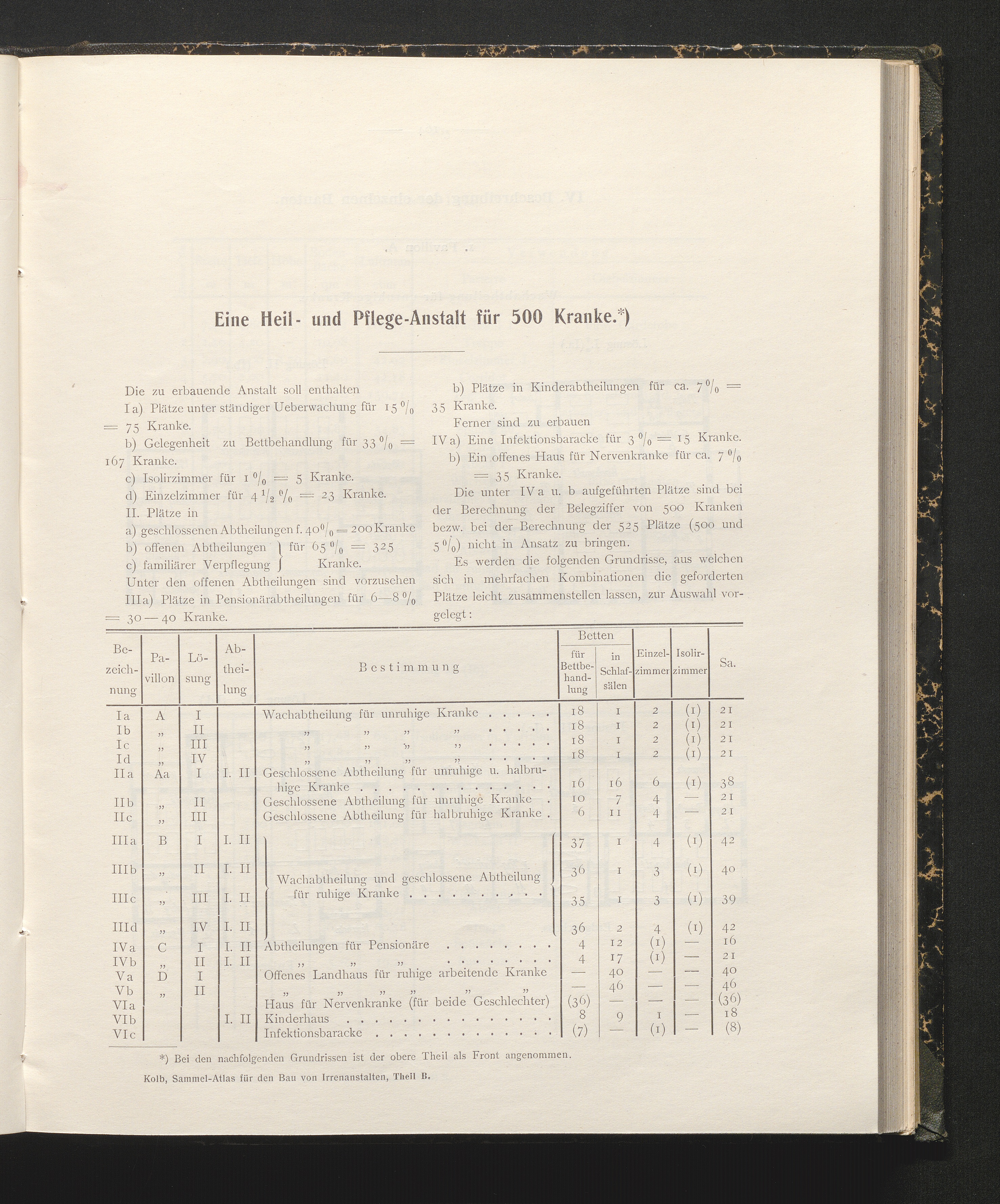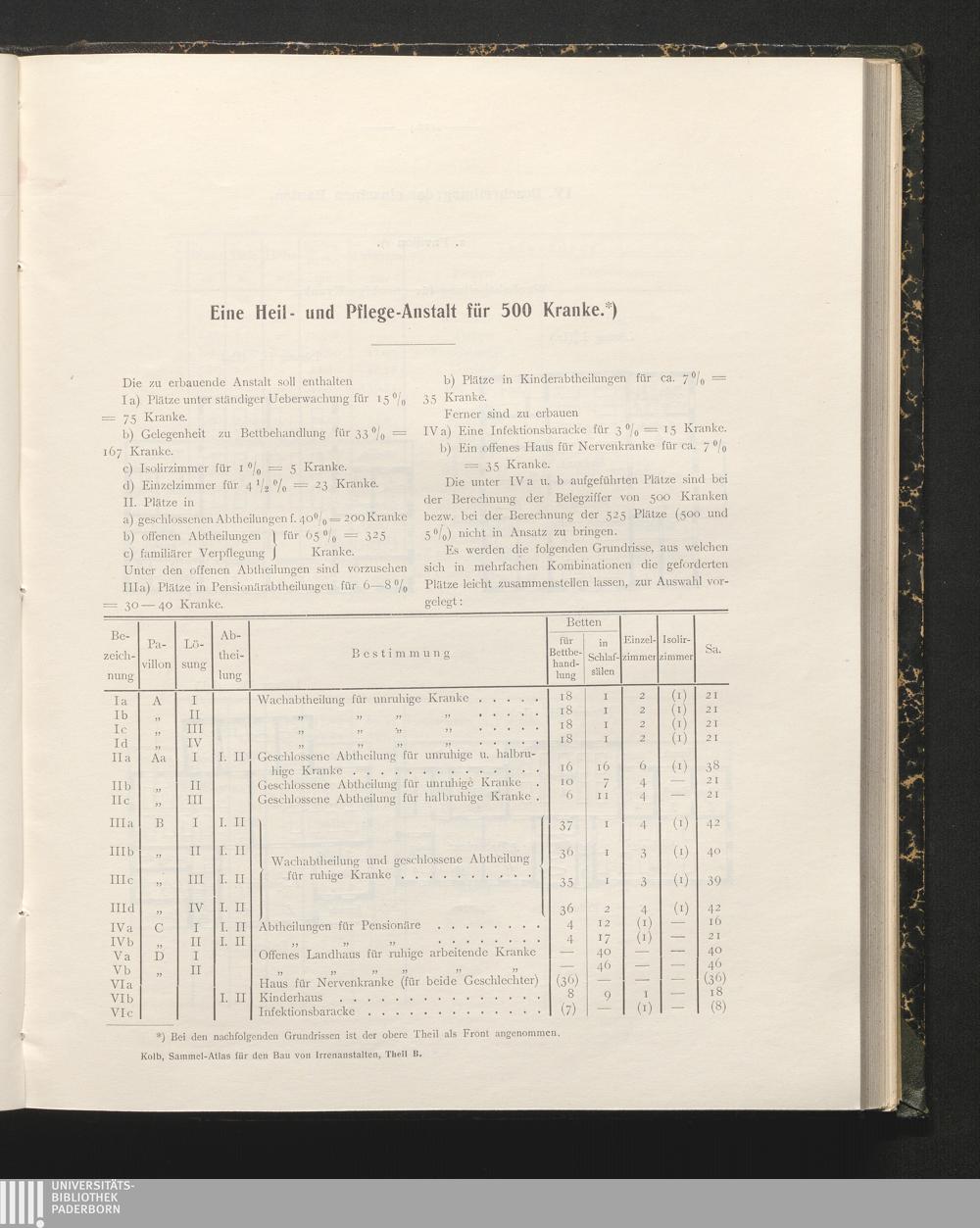 A/B (1902) Sammel-Atlas für den Bau von Irrenanstalten : ein Handbuch für Behörden, Psychiater und Baubeamte / hrsg. von G. Kolb