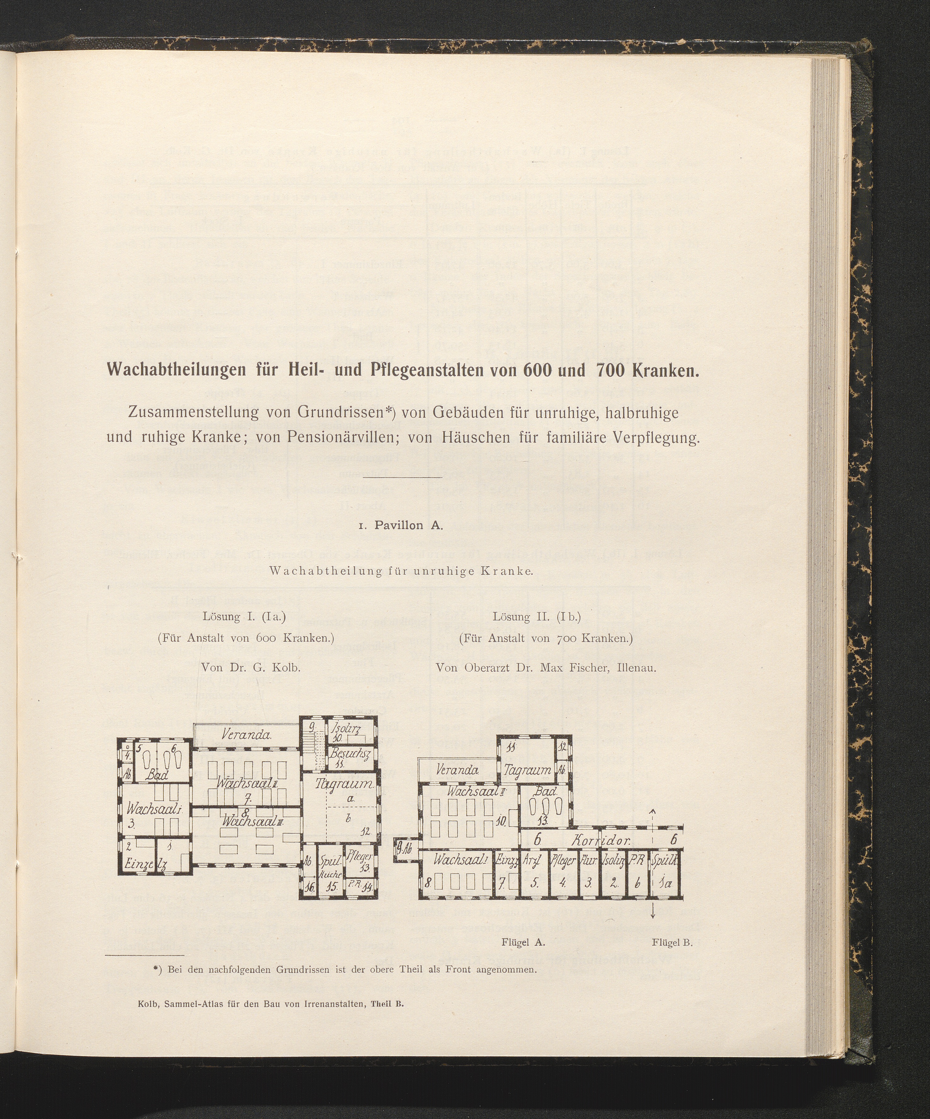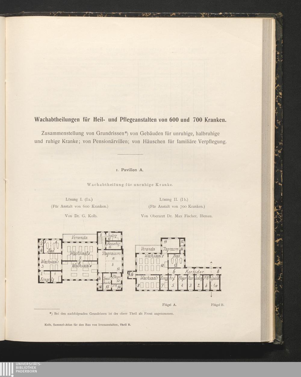 A/B (1902) Sammel-Atlas für den Bau von Irrenanstalten : ein Handbuch für Behörden, Psychiater und Baubeamte / hrsg. von G. Kolb