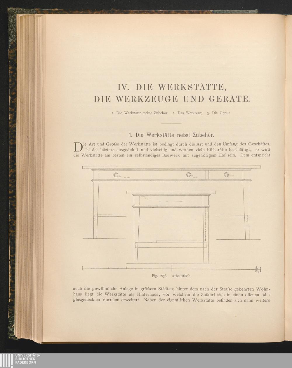 IV. Die Werkstätte, Werkzeuge und Geräte.