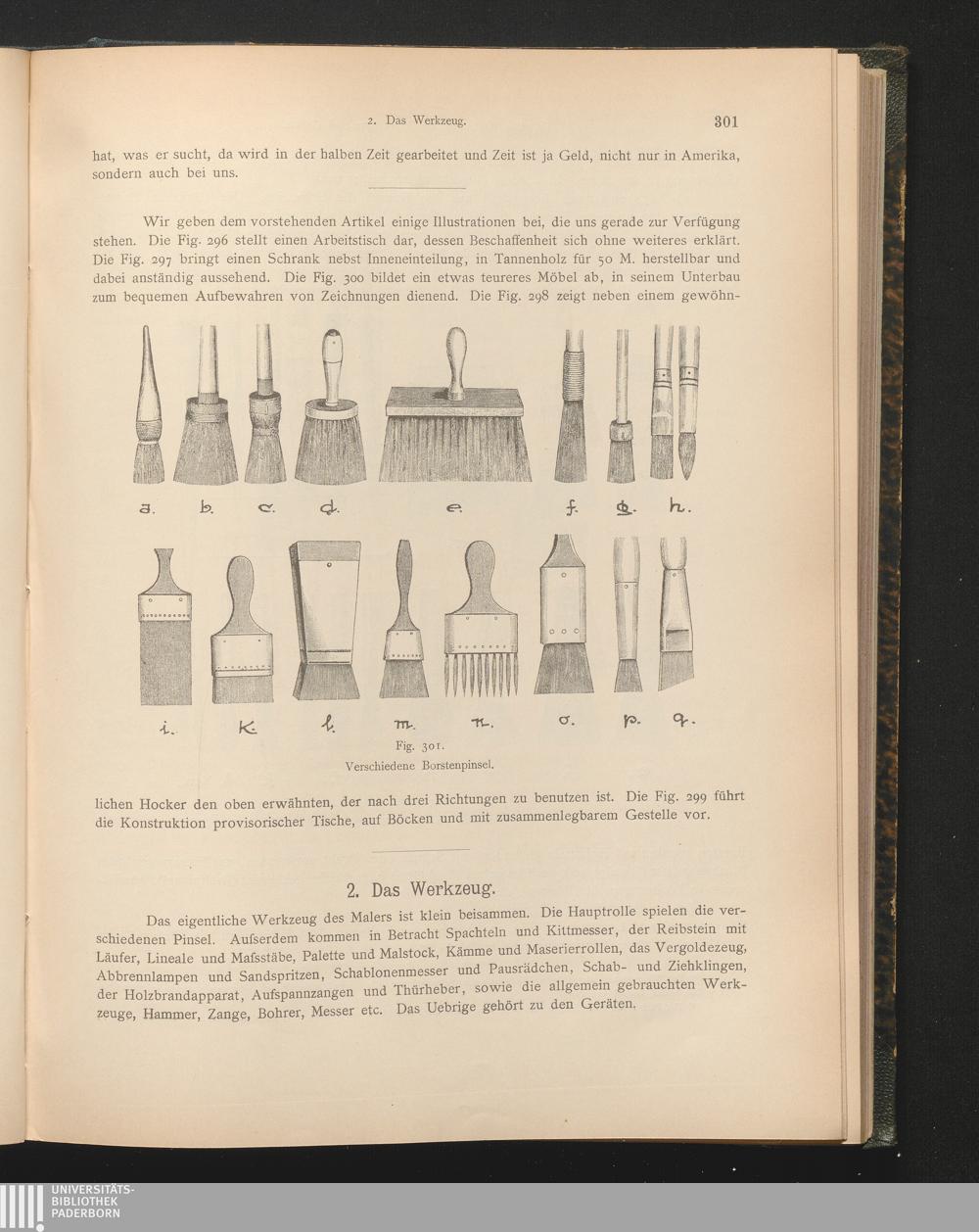 IV. Die Werkstätte, Werkzeuge und Geräte.