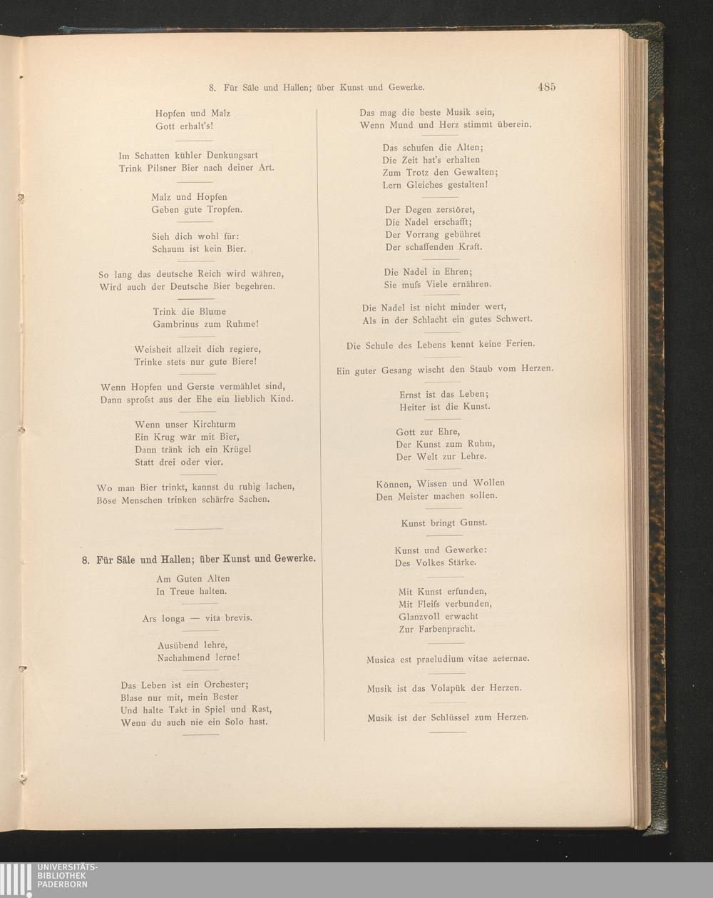 8. Für Säle und Hallen; über Kunst und Gewerbe