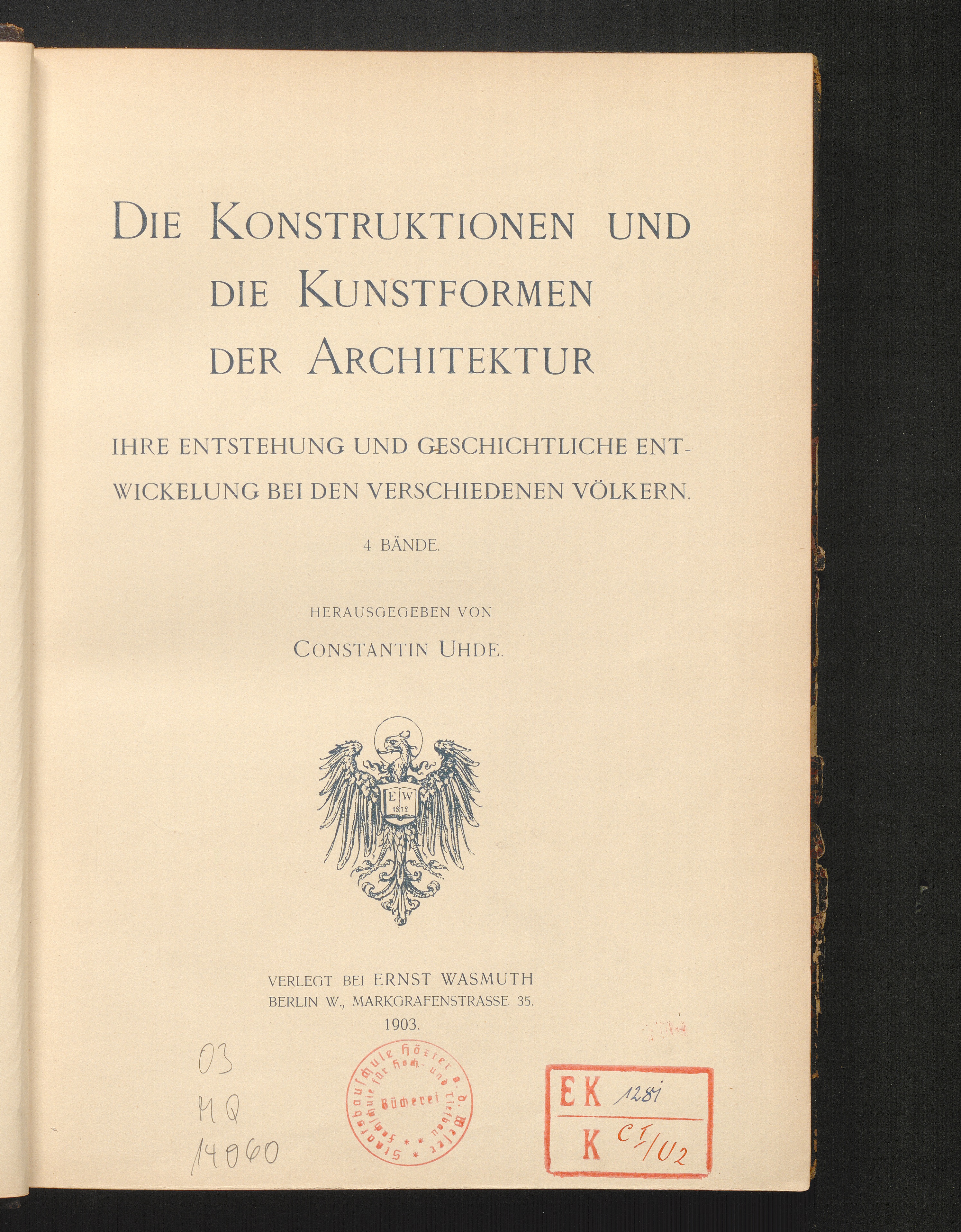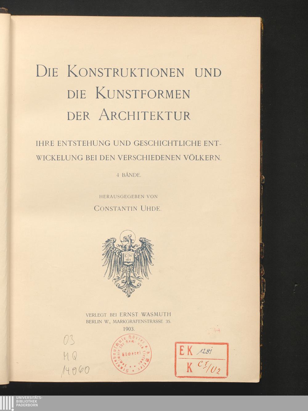 Der Holzbau : seine künstlerische und geschichtlich-geographische Entwickelung, sowie sein Einfluss auf die Steinarchitektur / von Constantin Uhde